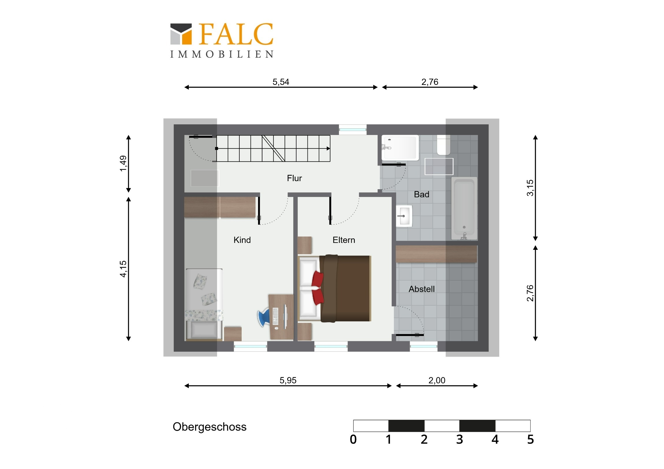 Auf der 2. Etage des Hauses erwartet Sie ein großzügiges, helles Badezimmer und das Hauptschlafzimmer mit ebenfalls viel Fläche für eine passende Kommode sowie einem Kleiderschrank. Aufgrund der Zimmergröße lässt sich hier aus einem Schlafzimmer, 2 Schlafräume realisieren. Ideal für Ihren Nachwuchs oder als Gästezimmer geeignet. Einen Alternativ-Grundriss haben wir für die Vorstellung für Sie exklusiv erstellen lassen.