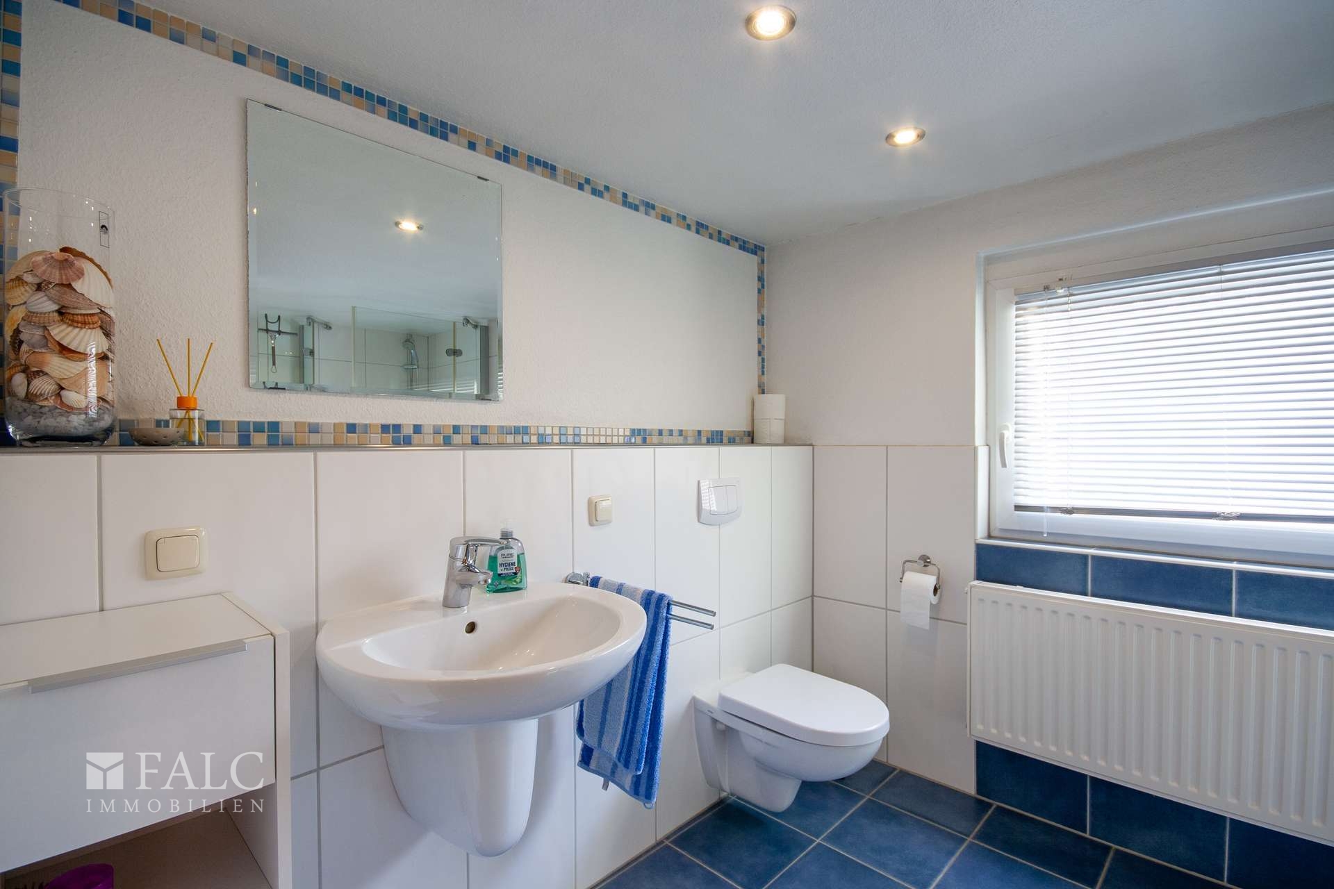 Alle Fenster sind in Kunststoffrahmen mit Isolierverglasung ausgeführt und aus den Jahren 2009 bzw. 2015. Für die Böden wurde im Erdgeschoss durchgängig ein moderner Fliesenbelag gewählt. Die Wohn- und Schlafräume im Obergeschoss wurden mit Laminat- bzw. Vinylböden, die Bäder mit Fliesenböden, ausgestattet.