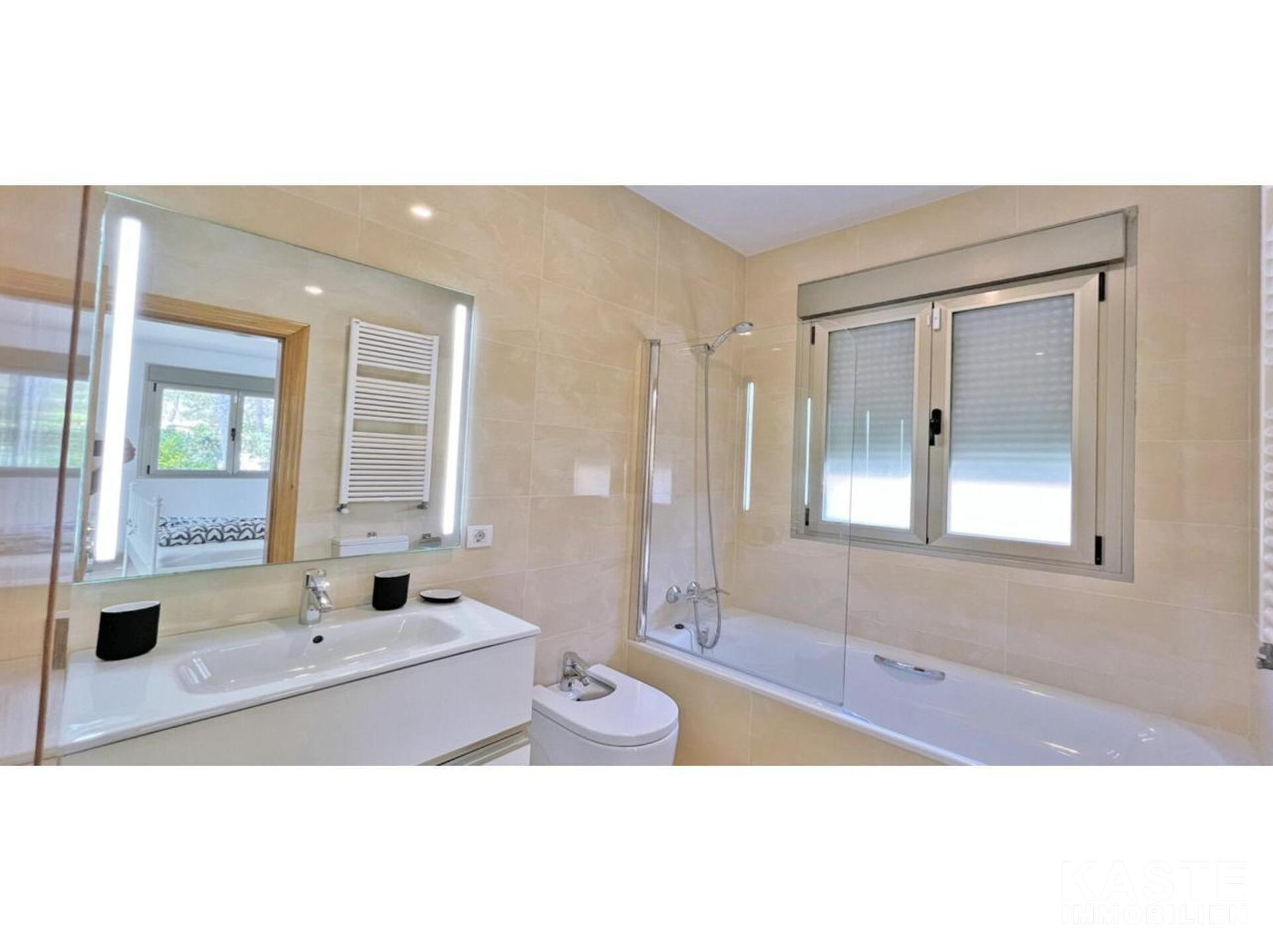 Das geräumige Erdgeschoss, der private Pool und der gepflegte Garten schaffen eine perfekte Umgebung zum Entspannen und Genießen. In unmittelbarer Nähe befinden sich Golfclubs, Fitnessstudios, Tennisplätze, Supermärkte, Cafés, Restaurants, Apotheken sowie Strandclubs, malerische Buchten und Sandstrände.