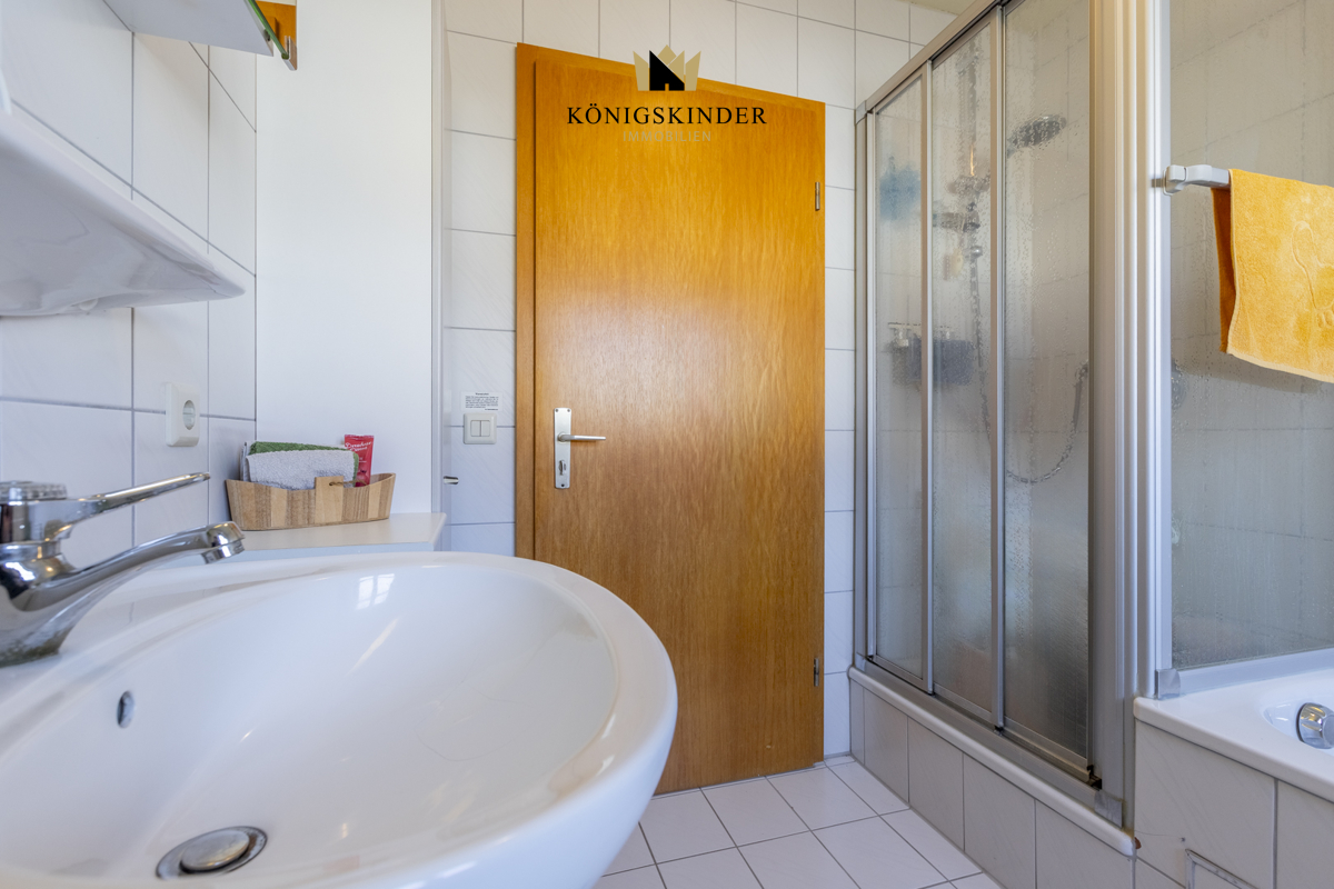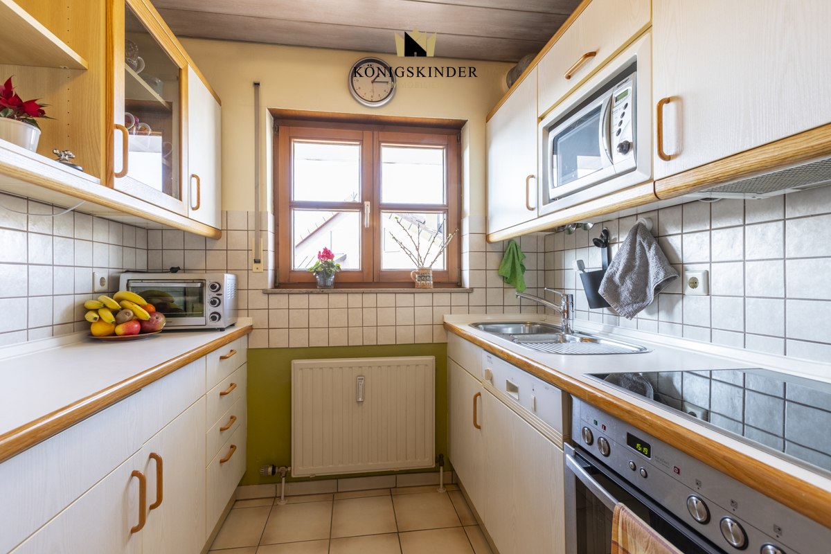 Die separate Küche ist funktional gestaltet und mit einer praktischen Einbauküche ausgestattet, die viel Stauraum und Arbeitsfläche bietet. Das Tageslichtbad verfügt über eine Badewanne und eine Duschkabine und sorgt mit seiner hellen Gestaltung für eine angenehme Atmosphäre.