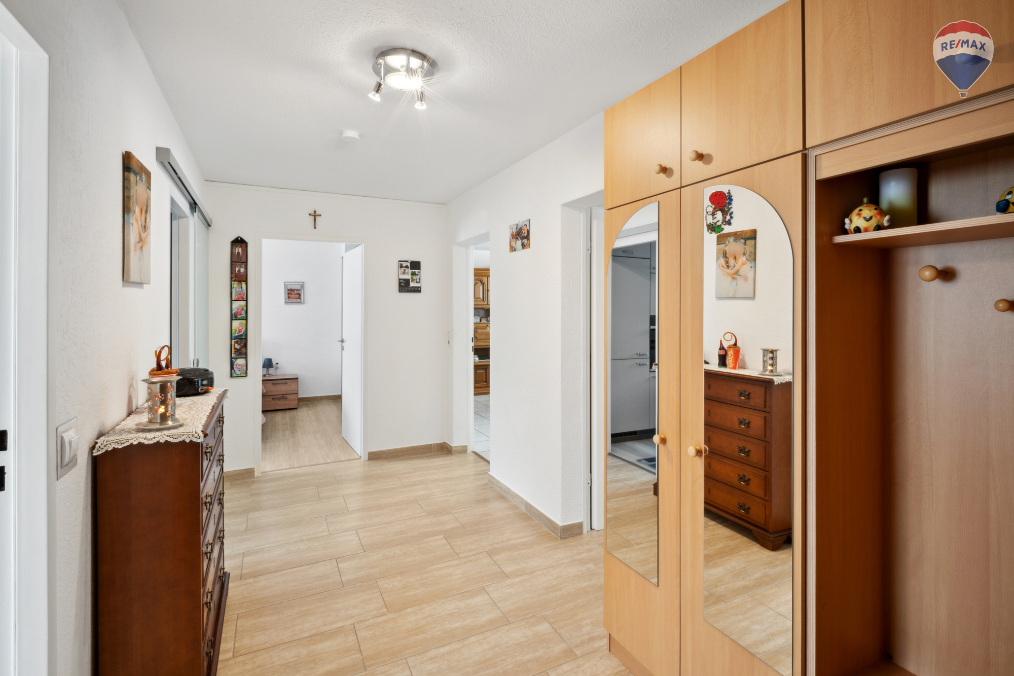 Hier bieten wir Ihnen eine helle und sehr gut geschnittene 3 Zimmer Wohnung, mit ca. 79,59 m² Wohnfläche in Öflingen an. Der Flur ist großzügig und hat einen Fliesenboden, zudem bietet er gleich links von der Eingangstüre aus gesehen eine kleine Abstellkammer mit Schiebetüre, da werden Sie diverse Utensilien und auch etwas Vorrat verstauen können, was bei einer Wohnung fast schon Gold wert ist. Weiter geht es vom Flur aus in alle weiteren Räume.
