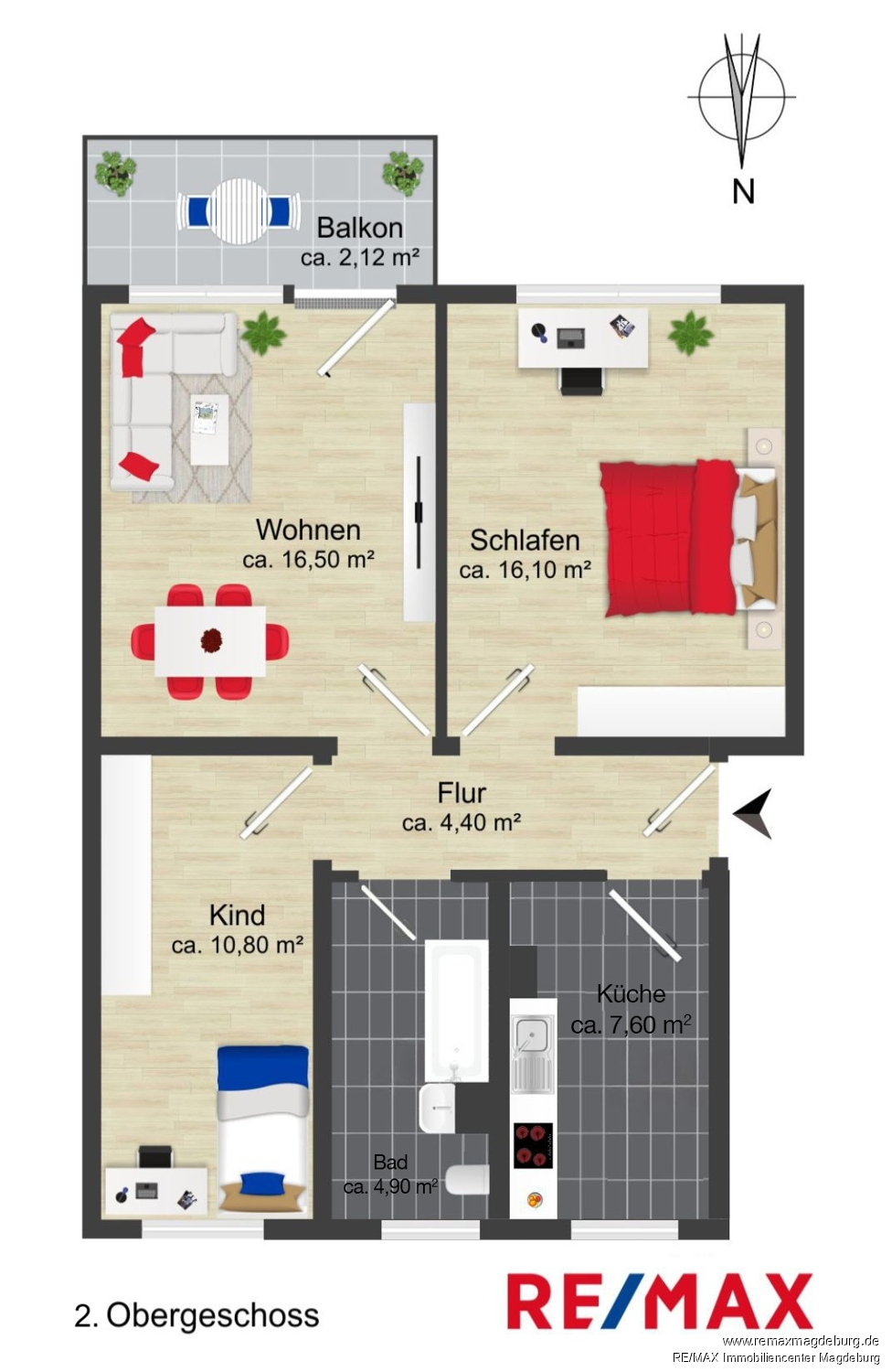Die 3-Raum-Wohnung im 2. Obergeschoss ist wie folgt aufgeteilt: