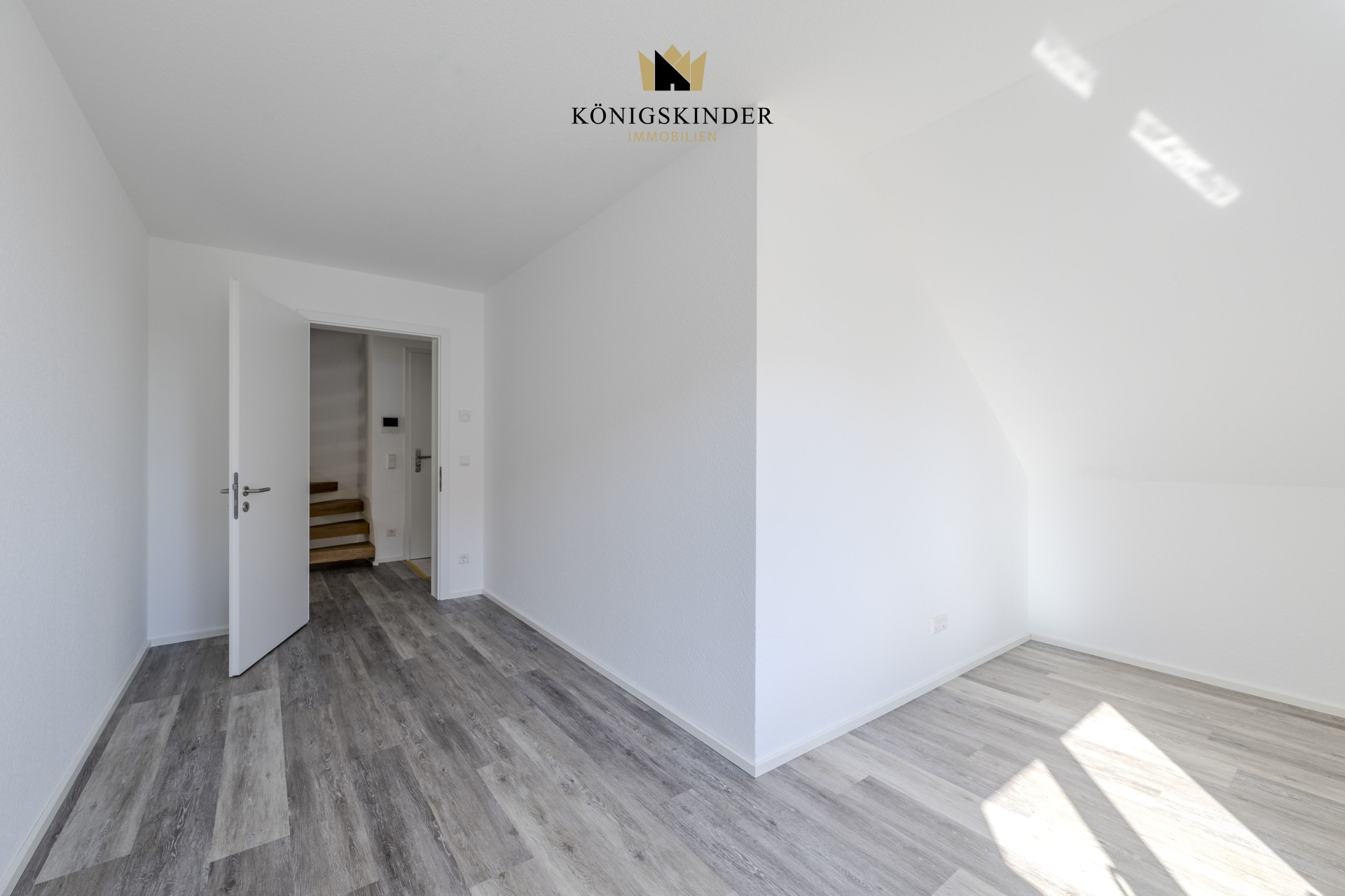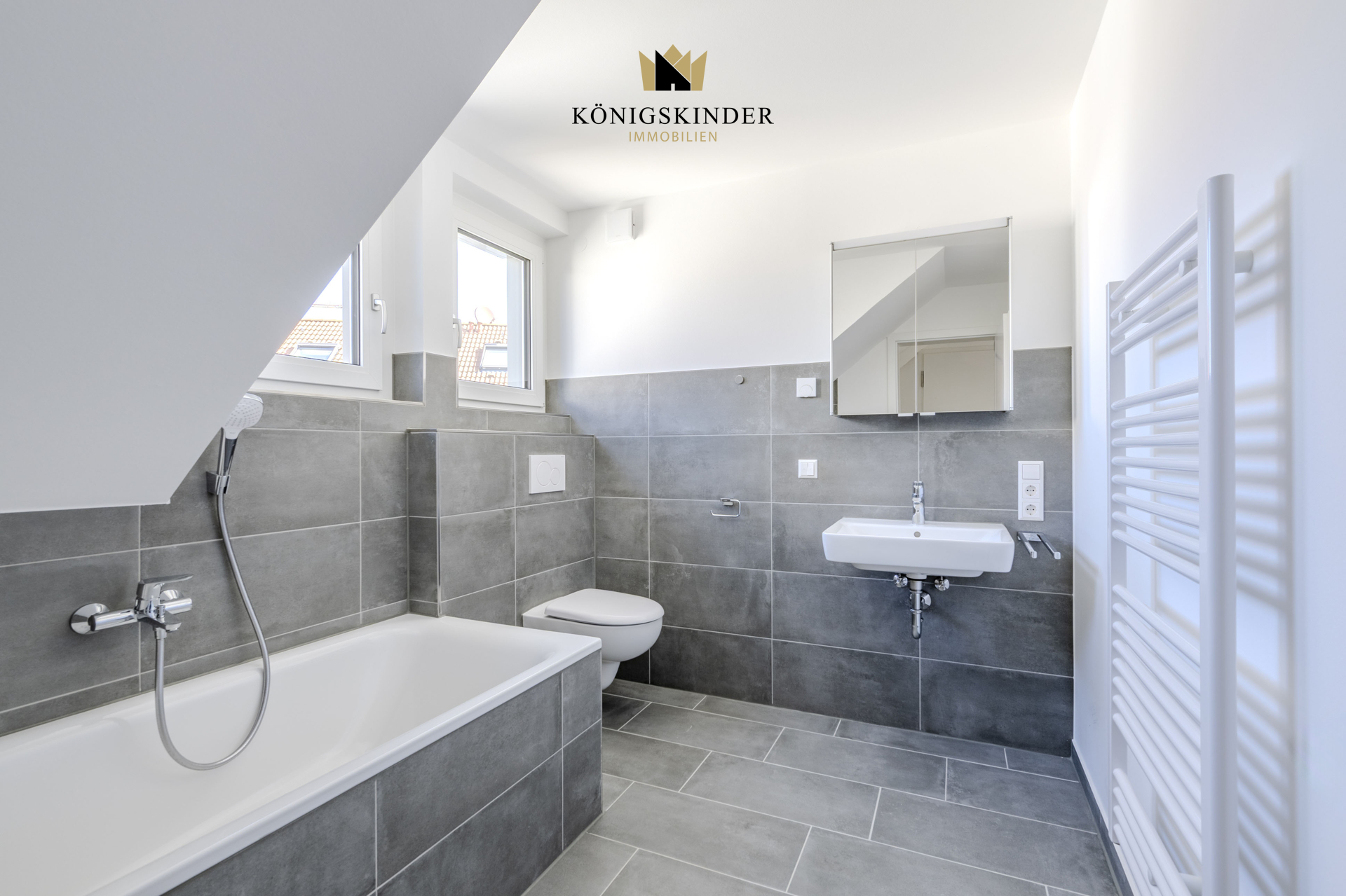 Die beiden modernen Badezimmer bieten hohen Komfort: Eines befindet sich im zweiten Obergeschoss mit einer bodengleichen Dusche, das andere im ersten Obergeschoss mit einer Badewanne. Die offene Küche lässt sich individuell nach Ihren Vorstellungen gestalten und fügt sich harmonisch in den Wohn- und Essbereich ein.