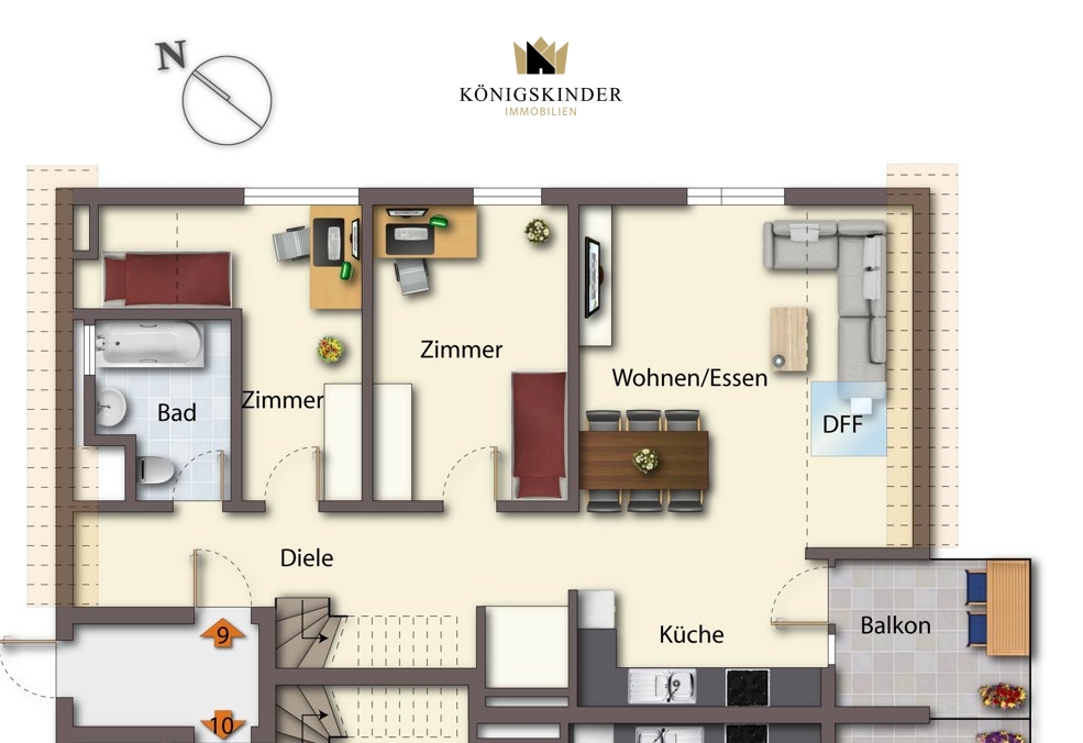 Ein besonderes Highlight ist der nach Süden ausgerichtete Balkon, der Ihnen viele sonnige Stunden ermöglicht. Alle Fenster sind zudem mit elektrischen Rollläden ausgestattet.