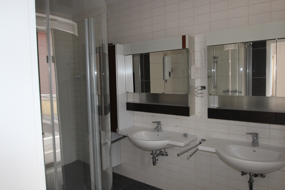 Alle Räume sind komfortabel über einen zentralen Flur zugänglich. Die Wohnung bietet drei Schlafzimmer, ein Badezimmer, das sowohl vom Flur als auch direkt aus einem der Schlafzimmer betreten werden kann, sowie ein praktisches Gäste-WC für zusätzlichen Komfort.