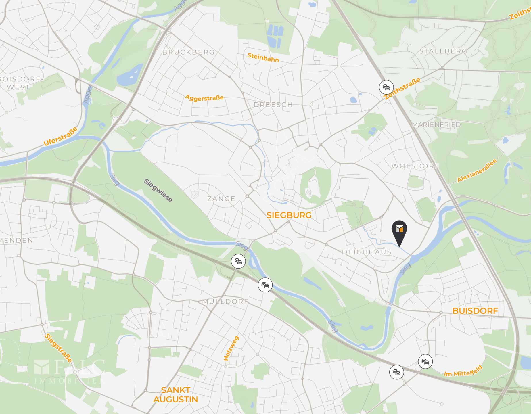 Die Liegenschaft ist verkehrsgünstig gelegen: Die Siegburger Innenstadt, der ICE-Bahnhof sowie die Autobahnanschlüsse sind kurzfristig erreichbar. In der näheren Umgebung befinden sich gastronomische Angebote und Einkaufsmöglichkeiten.