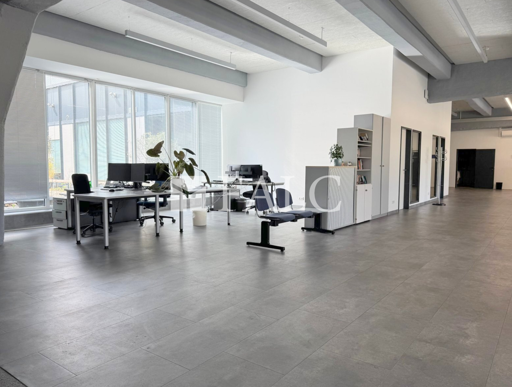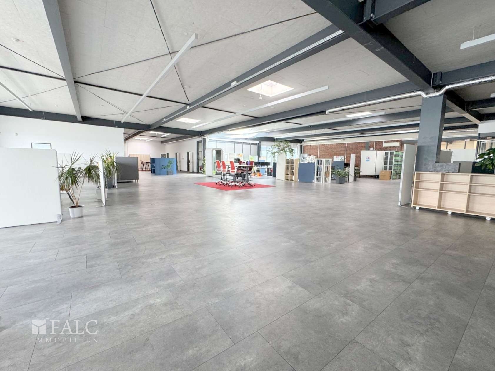 Die hier angebotene Gewerbe-Bürofläche überzeugt durch ihren modernen, industriellen Look, der eine offene und repräsentative Arbeitsatmosphäre schafft.