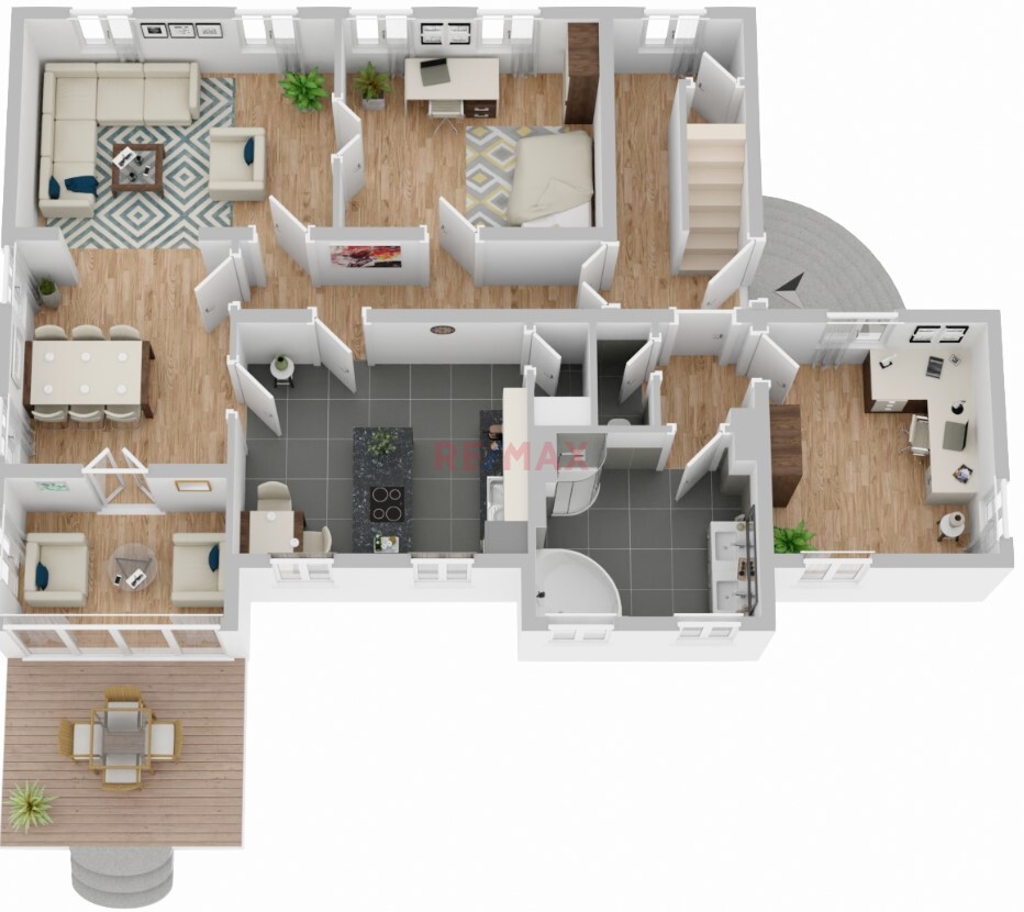 Aufteilung: •8 wunderschöne Wohn- Schlafzimmer •Große Küche mit Kochinsel •2. Küche optional möglich im Obergeschoss •Auf allen 3 Etagen befindet sich ein Badezimmer mit WC •Zudem gibt es noch 2 separate WC •Schicke Ankleide •Gemütlicher Wintergarten •Terrasse zum Entspannen •Begehbares Flachdach ca. 25 m² (Ausbau zur Dachterrasse möglich)