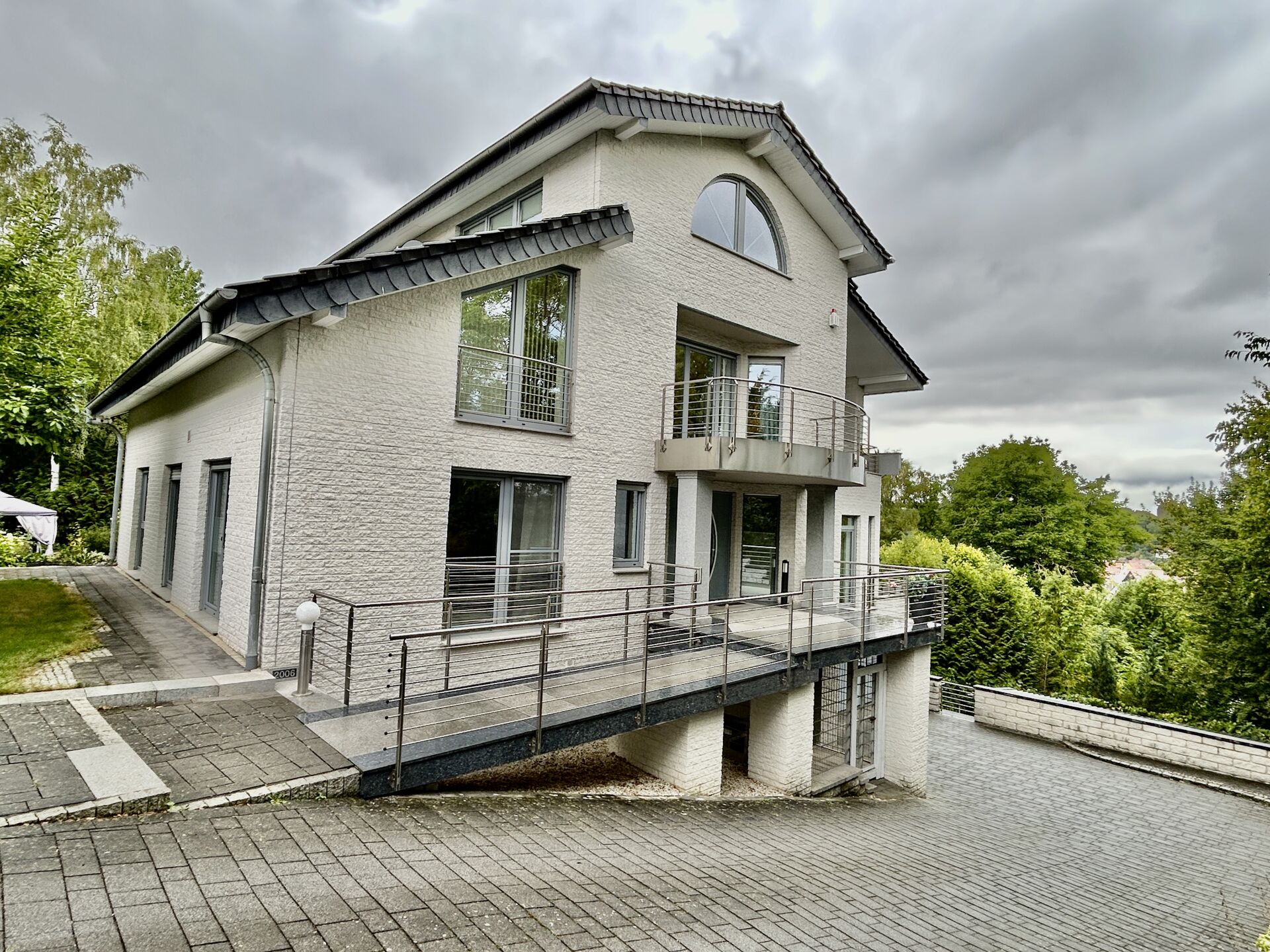 Diese beeindruckende Villa befindet sich in ruhiger Ortsrandlage am Ende einer Sackgasse in Warburg. Das Anwesen besticht durch seine großzügige und hochwertige Ausstattung sowie seine exklusive Privatsphäre auf einem abgeschotteten Grundstück. Die Zufahrt erfolgt bequem über ein elektrisches Tor, das Ihnen Sicherheit und Komfort garantiert. Das Haus präsentiert sich mit einer unempfindlichen Klinkerfassade und bietet einen wunderschönen und unverbaubaren Blick auf das historische Stadtbild von Warburg – ein einzigartiges Ambiente für anspruchsvolles Wohnen. Mehrere Balkone und Terrassen laden zum Verweilen im Freien ein und ermöglichen es, die idyllische Umgebung in vollen Zügen zu genießen. Im Inneren überzeugt die Villa durch eine hochwertige Ausstattung mit Granit- und Edelstahlelementen sowie einem gemütlichen Kamin im Wohnzimmer, der für behagliche Stunden sorgt. Für Wellnessmomente steht Ihnen bereits eine Sauna zur Verfügung. Mit insgesamt vier Bädern sowie einem Gäste-WC ist ausreichend Platz für Familie und Gäste vorhanden. Ein kompletter Küchenanschluss im OG bietet Ihnen weitere Gestaltungsfreiheit. Die Immobilie verfügt über eine großzügige Garage mit Platz für vier PKW und zwei E-Ladestationen, was besonders praktisch ist. Zudem eignet sich das Objekt hervorragend für die Nutzung als Praxis- oder Bürofläche – ideal für alle, die Wohnen und Arbeiten unter einem Dach verbinden möchten. Diese Villa vereint exklusive Ausstattung, Privatsphäre und eine traumhafte Lage zu einem außergewöhnlichen Gesamtpaket – ein echtes Juwel in Warburg.