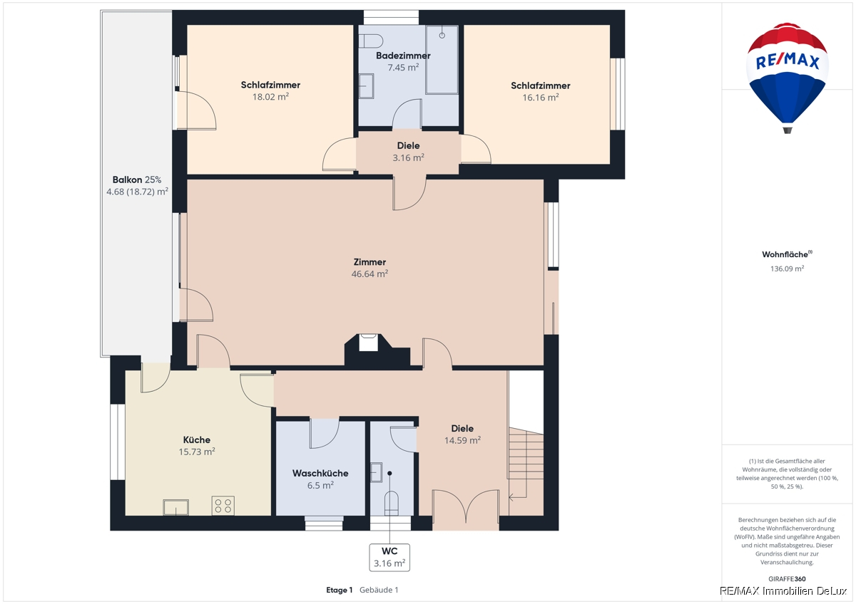 Maklerprovision in Höhe 3,57% inkl. 19 % MwSt. vom Kaufpreis ist mit Abschluss des Kaufvertrages verdient und fällig. RE/MAX erhält einen unmittelbaren Zahlungsanspruch gegenüber dem Käufer (Vertrag zugunsten Dritter, § 328 BGB). Hinweise: Bitte beachten Sie, dass dieses Angebot anhand der uns vom Eigentümer zur Verfügung gestellten Daten und Unterlagen erstellt wurde. Trotz aller Sorgfalt können wir für die Richtigkeit und Vollständigkeit der Angaben keine Gewähr übernehmen. Verbraucherinformationen: Online-Streitbeilegung gemäß Art. 14 Abs. 1 ODR-VO: Die Europäische Kommission stellt eine Plattform zur Online-Streitbeilegung (OS) bereit, die Sie hier finden: ec.europa.eu/consumers/odr