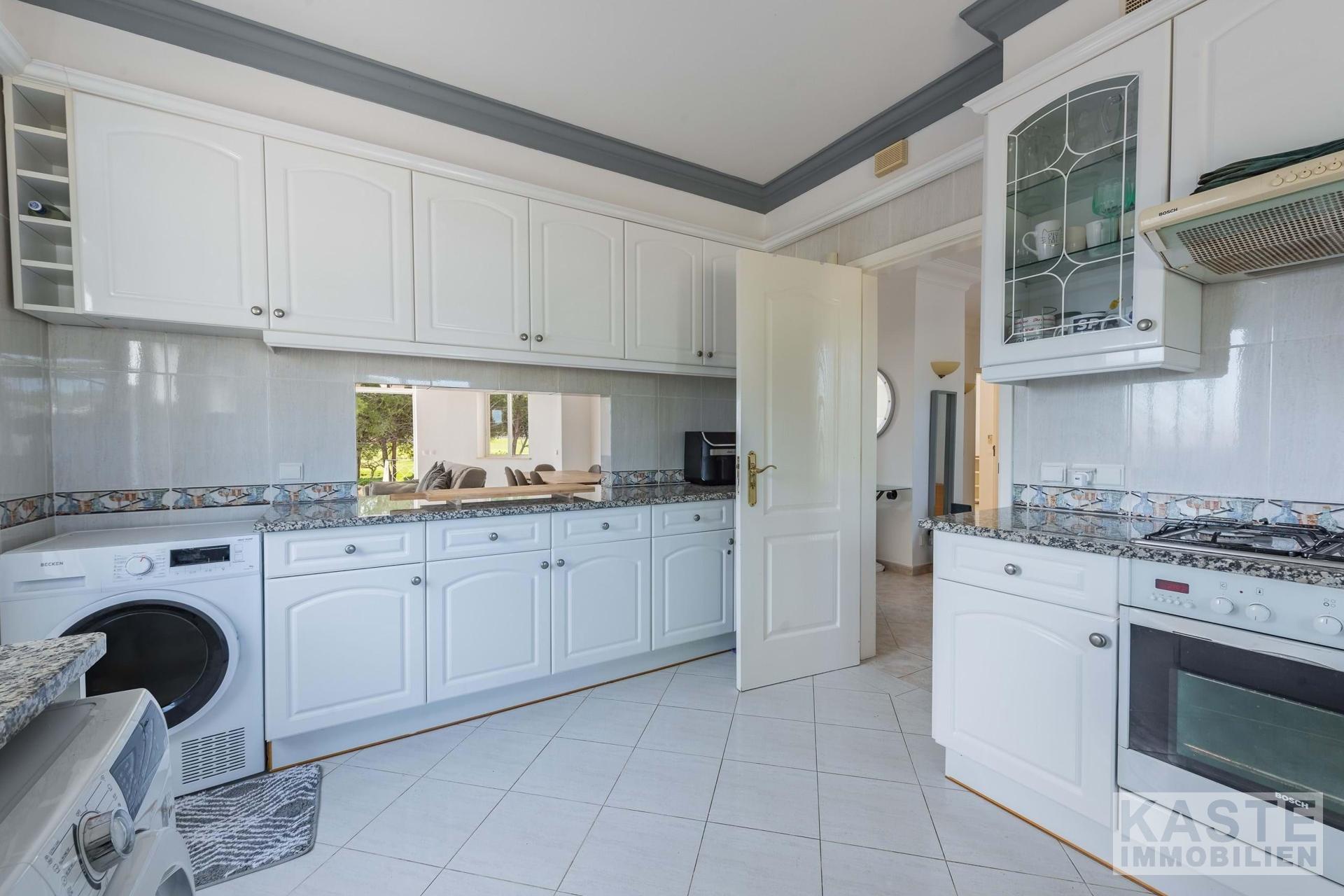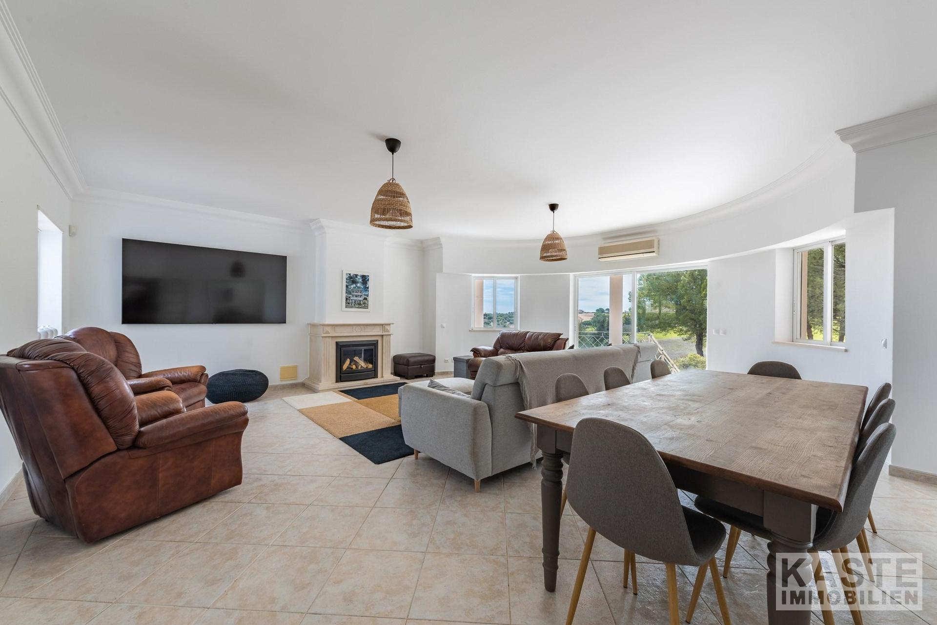 Die Immobilie wurde im Jahr 2001 im Rahmen der ersten Entwicklungsphase des renommierten Golfresorts erbaut und begeistert mit einer durchdachten Architektur, die helles Raumgefühl und hochwertige Ausstattung harmonisch verbindet. Das Herzstück bildet die voll ausgestattete Küche, die nahtlos in den großzügigen Wohn- und Essbereich übergeht. Hier sorgt ein offener Kamin für behagliche Atmosphäre, während große Fensterpanoramfenster einen spektakulären Blick auf den Golfplatz, die umliegende Landschaft und den Atlantik freigeben.