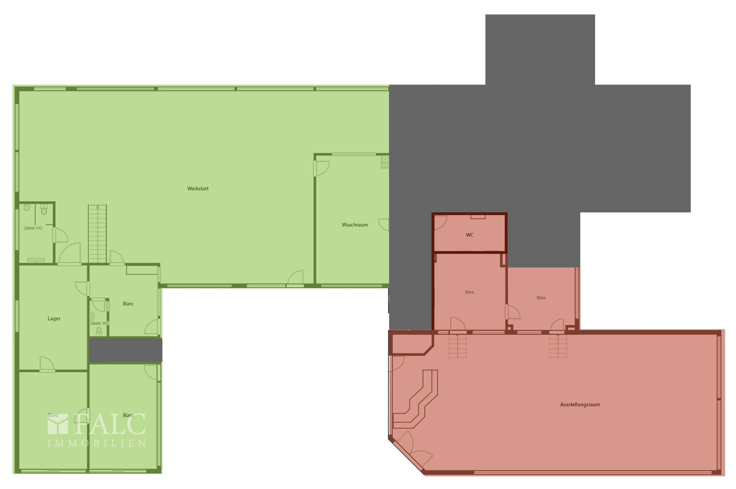 - Nutzung der ehemaligen Werkstatt inkl. der Ausstellungs-, Büro- und Kellerräume des linken Gebäudeteils gemäß dieses Exposés mit der Objektnummer FALC-VS-76178. - zusätzliche Nutzung des ehemaligen Ausstellungsraums inkl. der angrenzenden Büro- und Sozialräume gemäß des Exposés mit der Objektnummer FALC-VS-76183. - Auf Wunsch kann das gegenüberliegende Grundstück mit ca. 937m² als Abstell- und Lagerfläche zusätzlich angemietet werden.