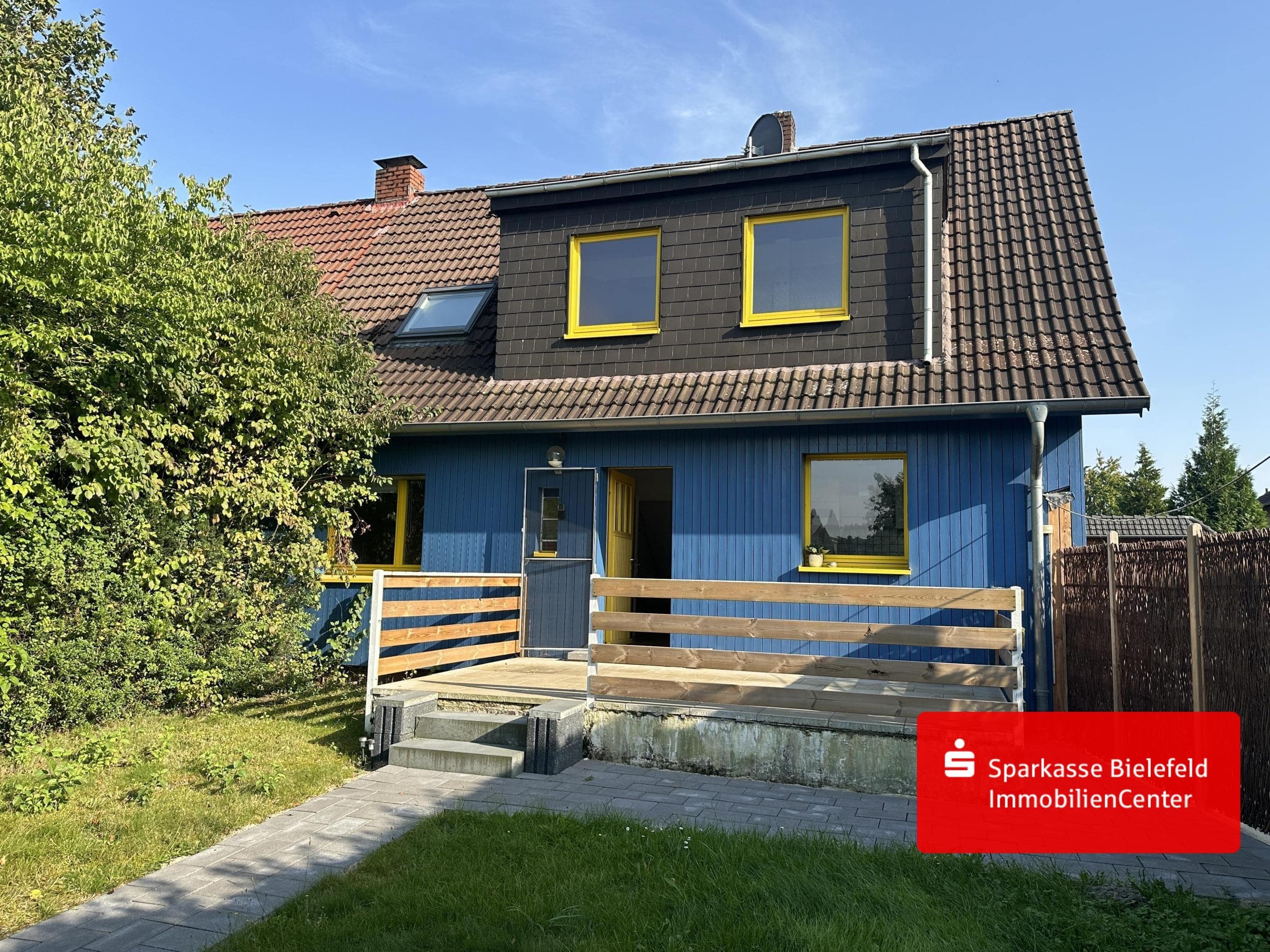 Sie möchten Ihren Traum vom Eigenheim in ruhiger Lage fernab des Stadtlärms erfüllen? Dann ist diese attraktive Immobilie genau das Richtige für Sie. Diese Doppelhaushälfte wurde im Jahr 1927 auf der sonnigen Seite Bielefelds in der beliebten Senne errichtet und fortlaufend modernisiert. Das Haus befindet sich auf einem 910 m² großen Grundstück und verfügt über eine gesamte Wohnfläche von ca. 100 m². Klassisch aufgeteilt liegen im Erdgeschoss der Flur, ein großzügiger Wohn- und Essbereich, die nach Süden ausgerichtete Terrasse, eine kleine Küche, das Bad und ein weiteres Zimmer. Im großen Garten genießen Sie Ihren Feierabend. Das Obergeschoss bietet ein Duschbad und 2 geräumige Schlafzimmer. Ihr zukünftiges Heim ist ausgestattet mit einer Gaszentralheizung, Holzfenster, teilweise mit Rollläden, Laminatböden und einem Vollkeller. Eine Garage und ein Stellplatz runden dieses Angebot ab. Das Haus mit seinem großen Grundstück ist bereits bezugsfertig. (Exposé 10240)