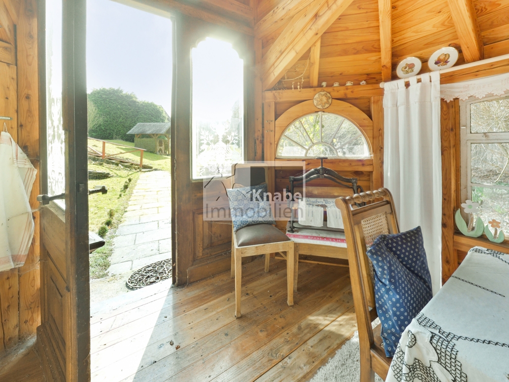 Ein echtes Highlight sind die beiden Terrassen mit herrlichem Blick ins Grüne - perfekt für entspannte Stunden im Freien, ganz gleich ob beim Frühstück in der Morgensonne oder beim Grillabend mit Freunden. Der großzügige Garten eröffnet eine kleine Naturwelt direkt vor der eigenen Haustür. Durch seine Hanglage und den direkten Waldblick wirkt er besonders idyllisch und privat. Freizeitvergnügen mit besonderem Flair versprechen zudem das urige Garten-haus nach „Meininger Art“ mit offenem Freisitz sowie ein separates Backhaus mit Steinofen – perfekte Orte für gesellige Stunden, kreative Hobbys oder gemütliche Sommerabende.