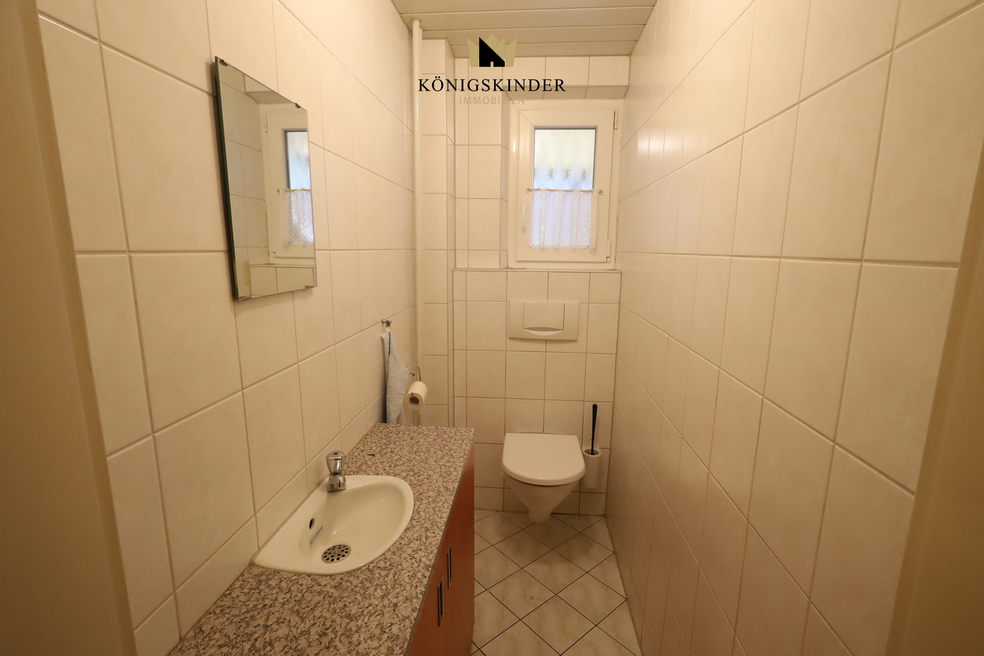 Darauf steht das massiv gebaute Haus von 1957, stattlich und solide und vollunterkellert. Das Haus ist als Ein- oder Zweifamilienhaus nutzbar. Im Erdgeschoss sind zwei Schlafzimmer und Wohn/ Esszimmer. Im Obergeschoss, das 1974 noch ausgebaut wurde, sind zwei Zimmer in der vermieteten Wohnung und ein zusätzliches Zimmer außerhalb der Wohnung. Beide Wohneinheiten haben ein Badezimmer und jeweils eine Küche auf insgesamt ca. 142 m². Ihre PKWs stehen geschützt vor Wind und Wetter in einer Doppelgarage.
