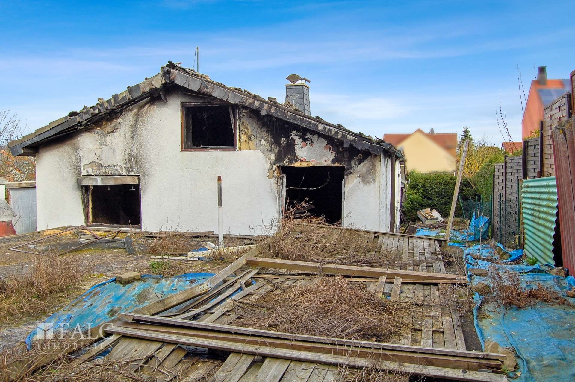 Auf der 651 qm großen Grundstücksfläche können Sie Ihr individuelles zu Hause errichten! Nach einem Brand befinden sich zurzeit auf dem Grundstück noch einige Gebäude, die abgerissen werden müssen. Die voraussichtlichen Abrisskosten liegen bei ca. 40.000 €. Die Abrisskosten sind im Kaufpreis nicht enthalten, wurden aber bei der Preisfindung berücksichtigt. Unter der Immobilie ist ein Keller vorhanden.