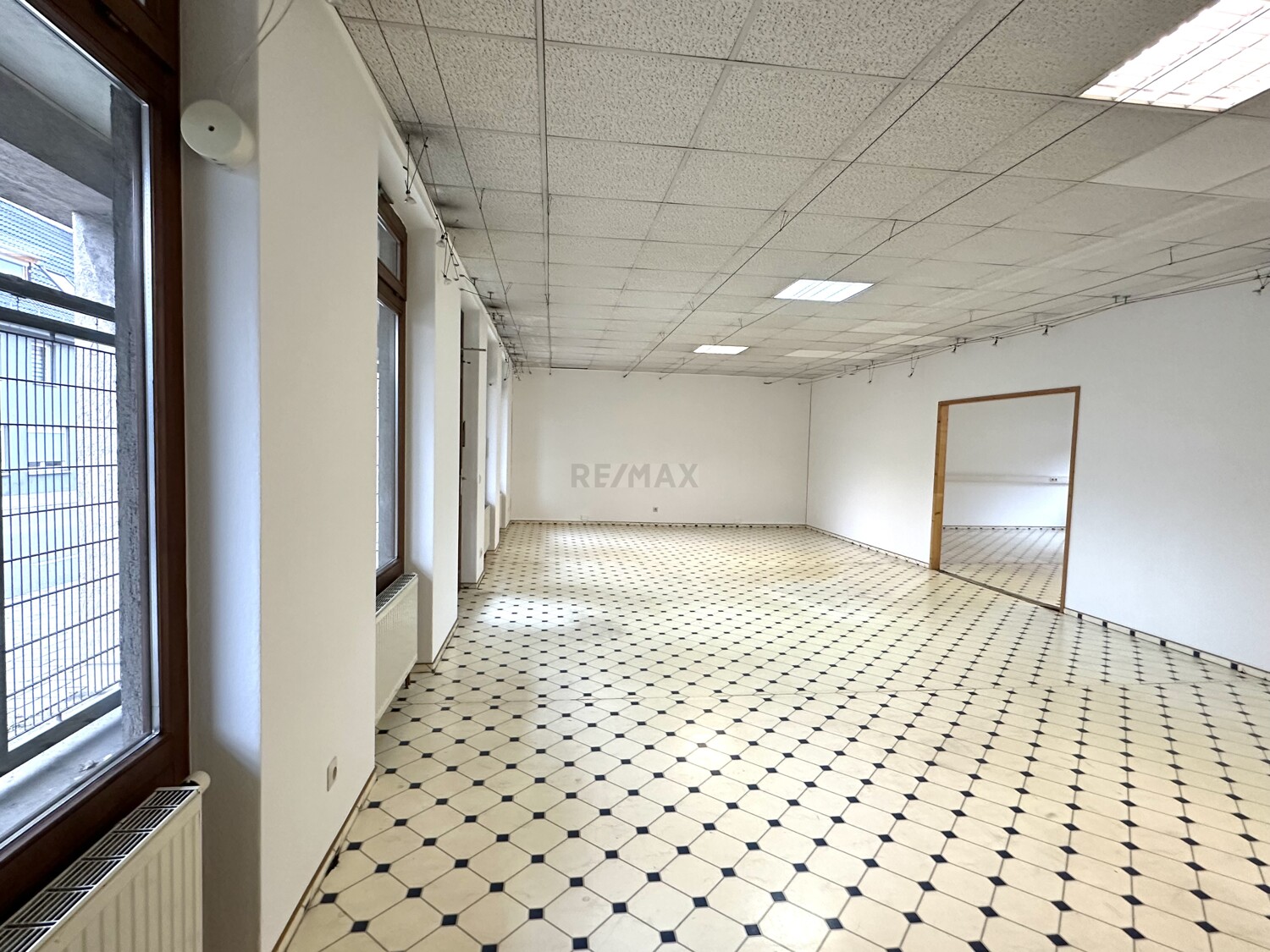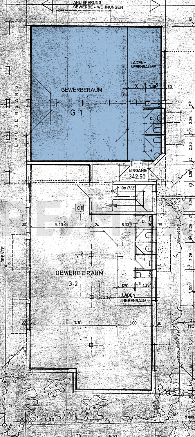 Die Immobilie bietet eine Gesamtfläche von ca.138 m² und kann über zwei Eingänge betreten werden. Die zwei großen lichtdurchfluteten Verkaufsräume sind aktuell durch eine Trockenbauwand getrennt, hier kann die Raumaufteilung flexibel gestaltet werden. Große, 2-fach verglaste Fenster sorgen für genügend Tageslicht. Zur Gewerbeeinheit gehört ein Abstellraum im UG und ein Tiefgaragenstellplatz.
