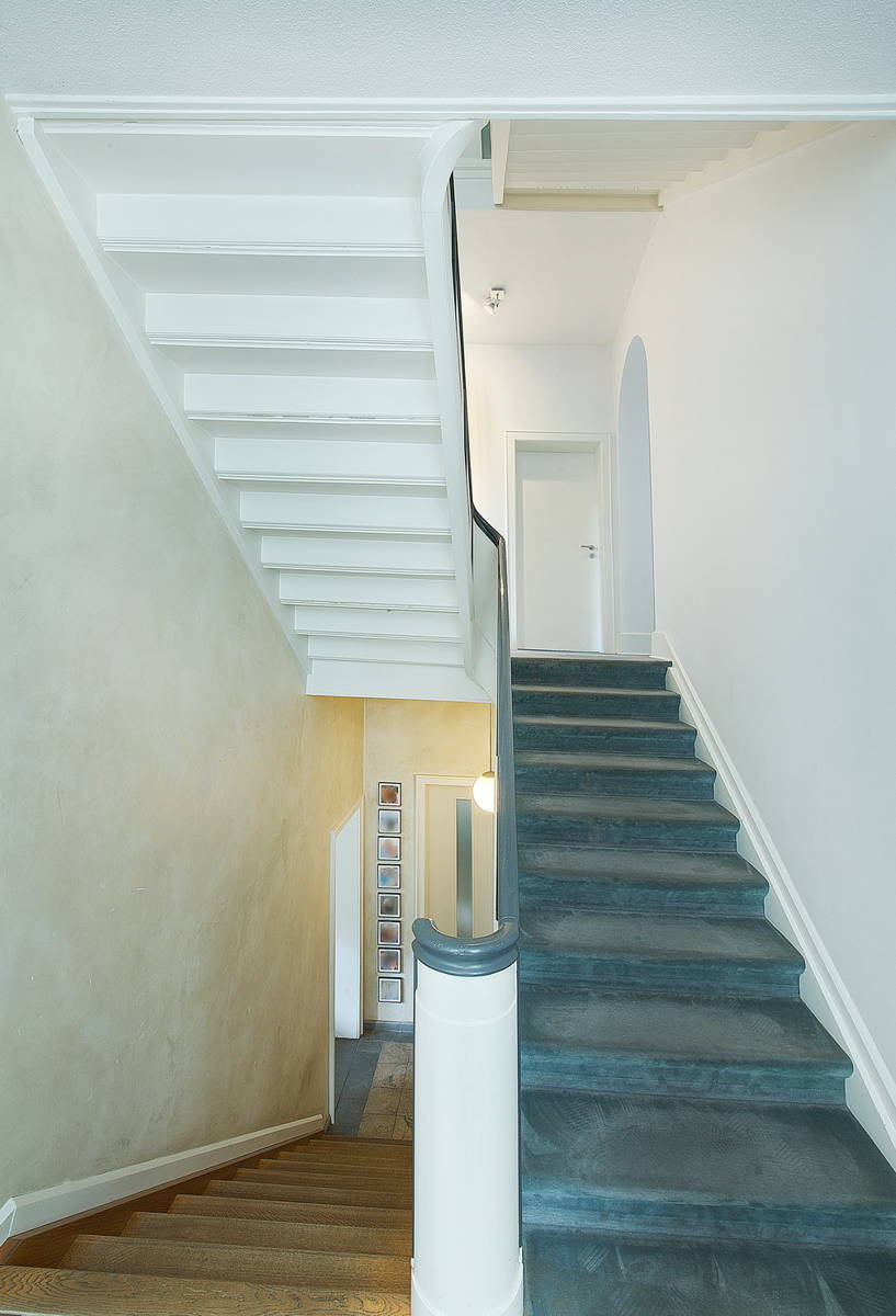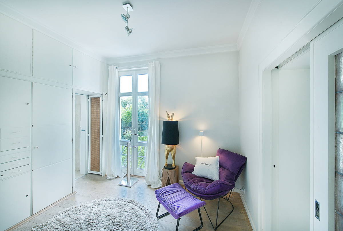 Das Obergeschoss verfügt über mehrere Schlafzimmer, darunter ein Elternschlafzimmer mit separatem Ankleideraum und eigenem Bad, weitere Kinder- bzw. Gästezimmer sowie zusätzliche Bäder und ein Gäste-WC. Das Dachgeschoss, aktuell als Büro genutzt, bietet vier großzügige Räume, eine Küche, ein Bad und einen Balkon – ideal für Arbeiten, Wohnen oder als eigenständige Einheit. Im Souterrain befindet sich eine abgeschlossene Einliegerwohnung mit Bad.