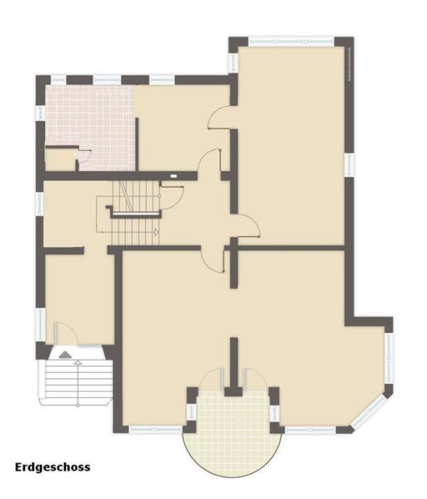 Erdgeschoss: geräumiges Wohnzimmer mit Zugang zur Terrasse, Essbereich und Küche mit Zugang zum Garten bzw. Terrasse, Gäste-WC, Empfangshalle,