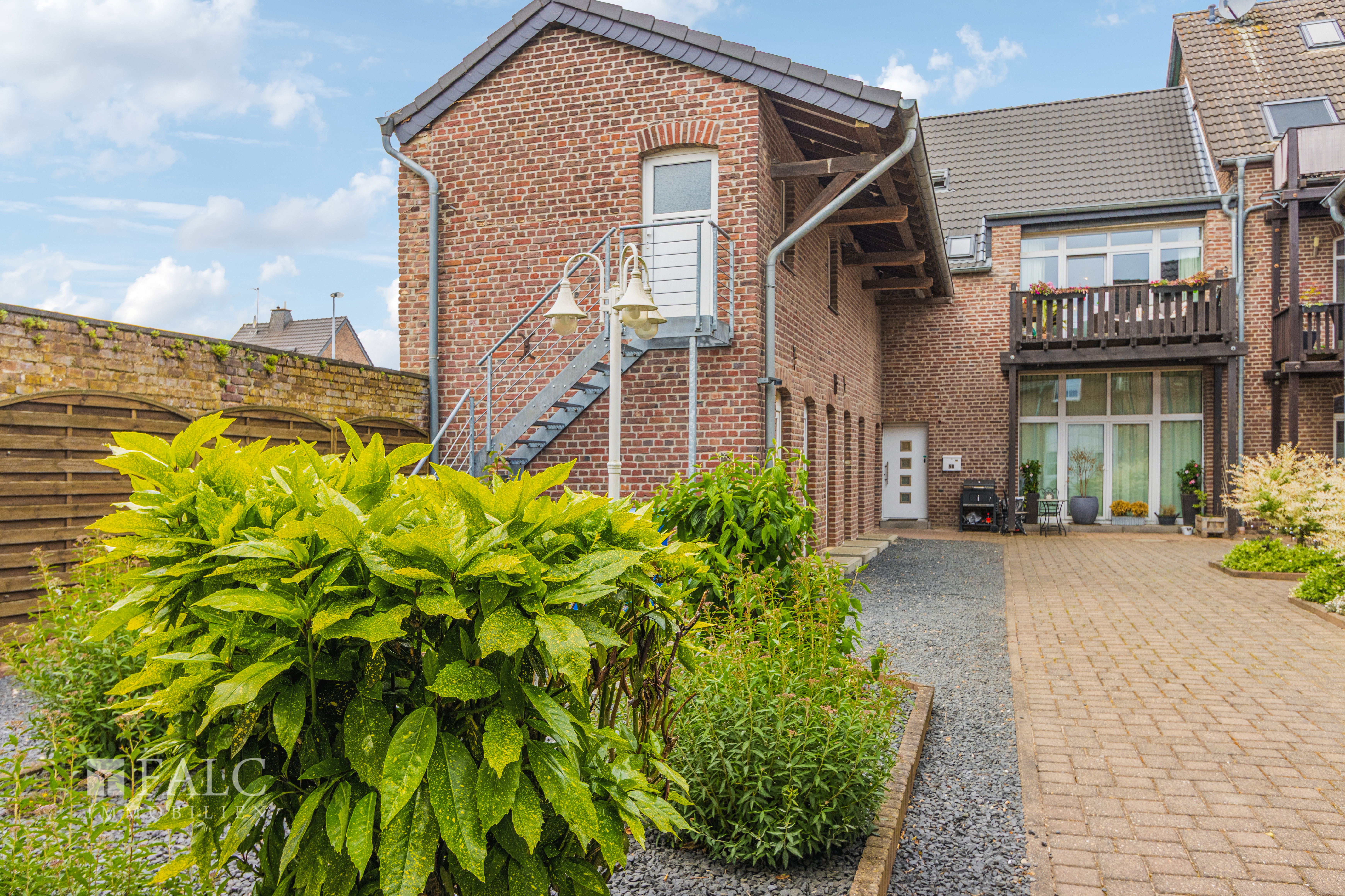 Der Außenbereich präsentiert sich mit einer schönen Terrasse, einem liebevoll gestalteten Innenhof sowie eigenen Stellplätzen und einer Garage – ideale Voraussetzungen für komfortables Wohnen.