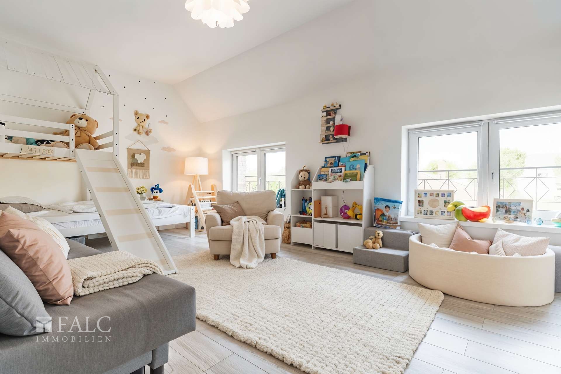 Ein weiteres Highlight stellen die ausgebauten Dachzimmer dar, die vielfältige Nutzungsmöglichkeiten bieten – ob als ruhiges Homeoffice, Hobbyraum oder zusätzliches Schlafzimmer.