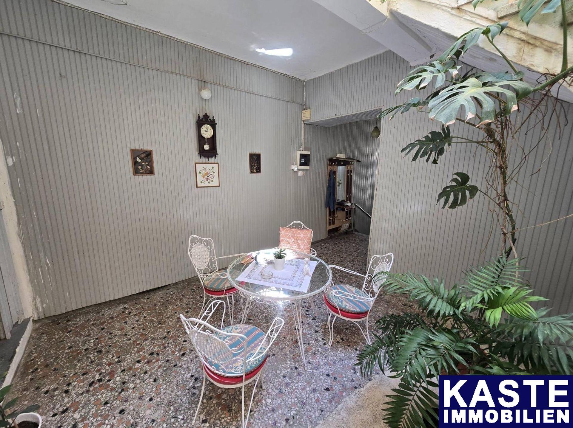 Das Haus erstreckt sich über drei Ebenen. Im Erdgeschoss auf 89 m² finden sich ein einladendes Wohnzimmer, eine Küche, ein praktischer Abstellraum sowie ein Badezimmer. Ein größerer Innenhof lädt zum Entspannen im Freien ein und ist ideal für mediterrane Gartengestaltung. Der erste Stock mit 80 m² umfasst zwei geräumige Schlafzimmer mit natürlich lichtdurchfluteten Räumen, einen Flur, ein weiteres Badezimmer und einen einladenden Balkon, von dem aus Sie faszinierende Ausblicke auf die malerische Meerenge der Stadt genießen können.