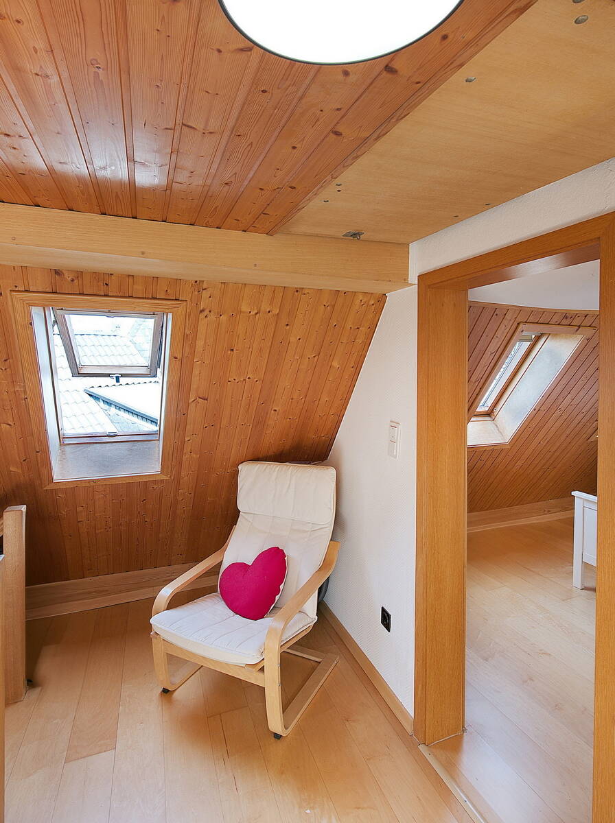 Im ausgebauten Dachgeschoss stehen Ihnen zwei weitere Zimmer zur Verfügung, die flexibel als Kinder-, Arbeits- oder Gästezimmer genutzt werden können. Ergänzt wird diese Etage durch einen geräumigen Flur mit zusätzlichem Stauraum.