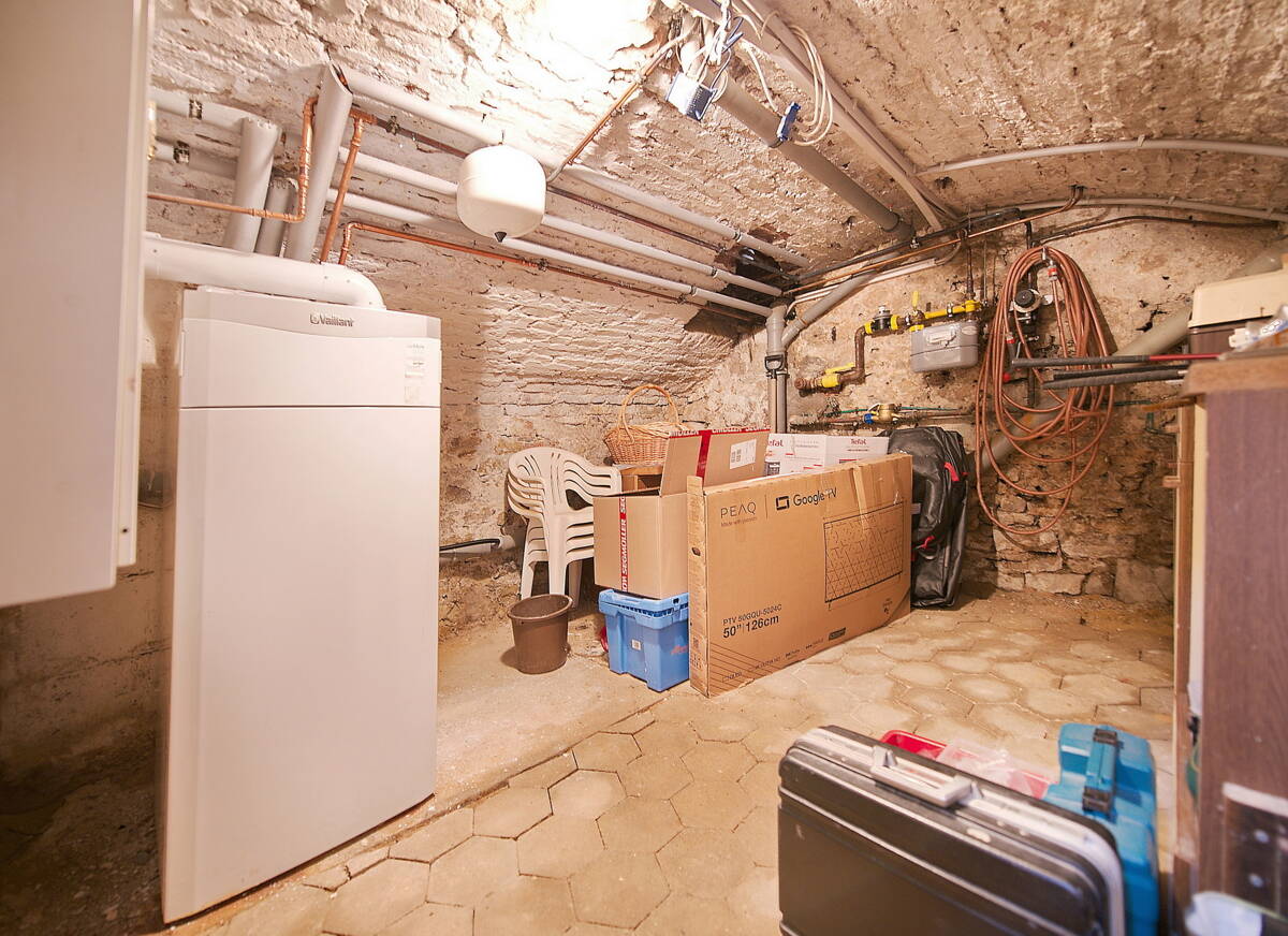 Das Haus ist teilweise unterkellert und verfügt über einen historischen Gewölbekeller, der zusätzlichen Platz bietet.