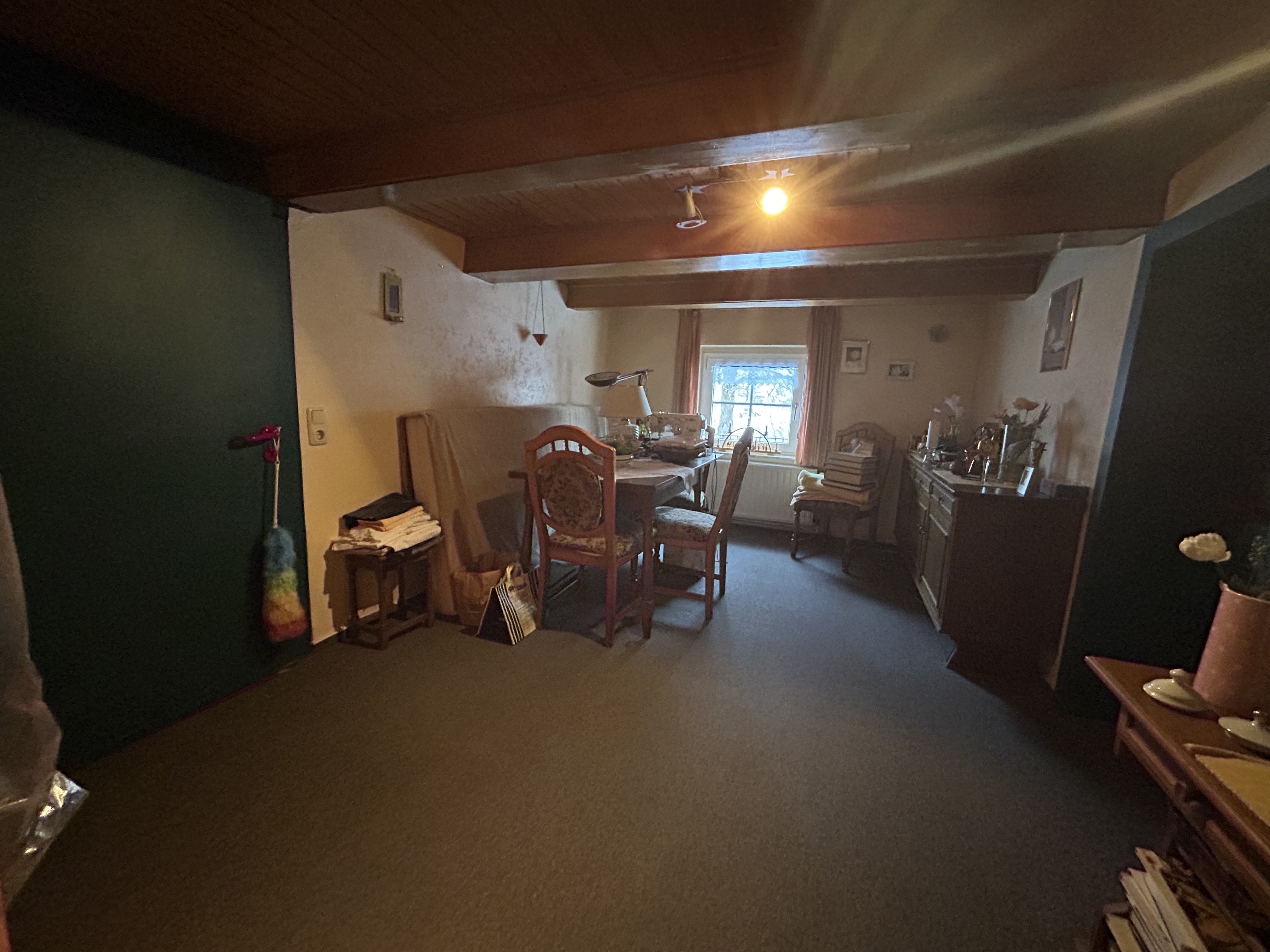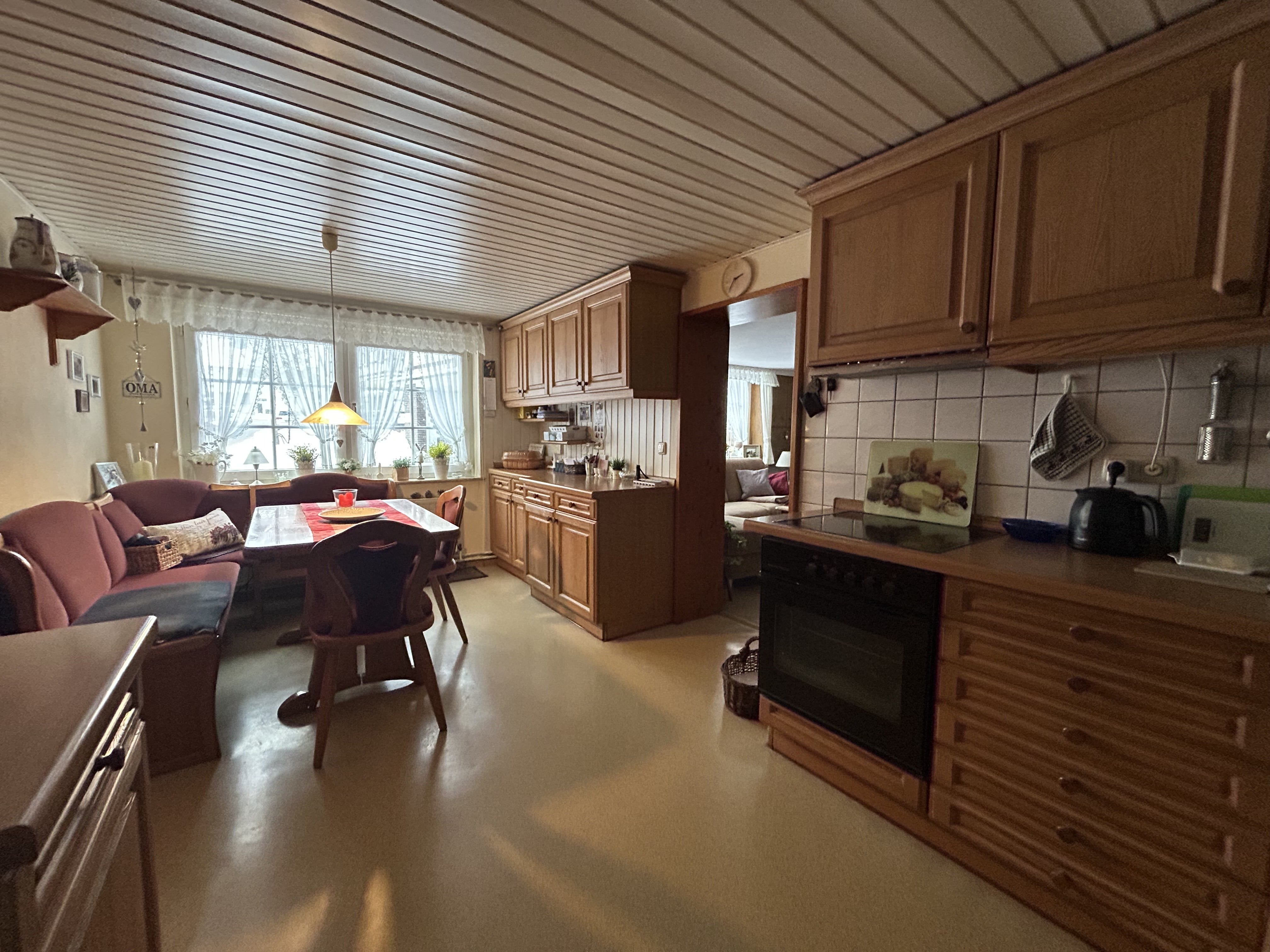Dieses charmante Fachwerkhaus aus dem Jahr 1760 befindet sich in zentraler Lage im Ortskern von Bösingfeld und verbindet historischen Charakter mit vielseitigen Nutzungsmöglichkeiten. Das Ensemble besteht aus einem Haupthaus sowie einem separaten Bruchsteinanbau mit eigener Wohneinheit – ideal für Mehrgenerationenwohnen, Gäste oder zur Vermietung. Das Haupthaus bietet im Erdgeschoss eine Wohnfläche von ca. 68,4 m², die sich funktional und gemütlich in eine Küche, ein Wohnzimmer, ein Schlafzimmer und ein Bad aufteilt.