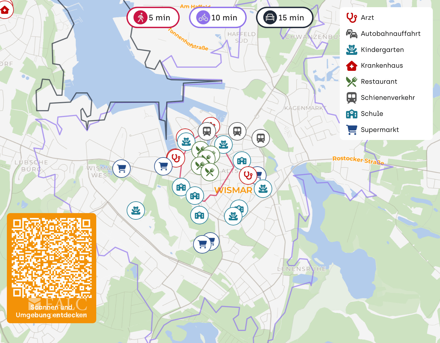 Die Immobilie befindet sich in unmittelbarer Nähe des historischen Hafens der Hansestadt Wismar, einem der markantesten und lebendigsten Stadtteile im Nordwesten Mecklenburg-Vorpommerns. Der Hafenbereich zeichnet sich durch seine besondere maritime Atmosphäre aus, die durch restaurierte Speichergebäude, moderne Hafenanlagen und die Nähe zur Wismarer Bucht geprägt ist. Fußläufig erreichbar sind zahlreiche gastronomische Einrichtungen, Cafés, kleine Boutiquen sowie kulturelle Sehenswürdigkeiten wie das Baumhaus, der Alte Hafen und das Wassertor, die den Standort sowohl für Einheimische als auch für Touristen attraktiv machen.