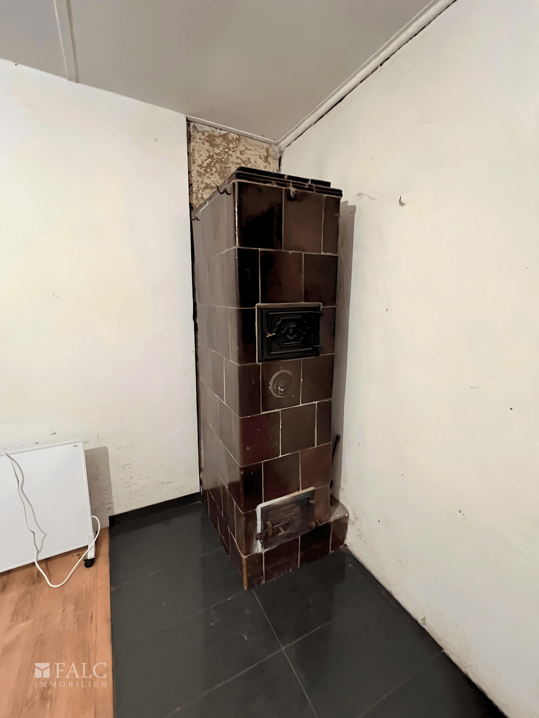 Beheizt wird das Haus aktuell über eine Gasheizung sowie einen Kachelofen. Beide Heizsysteme können im Rahmen einer umfassenden Sanierung erhalten, erweitert oder durch moderne Technik ersetzt werden.