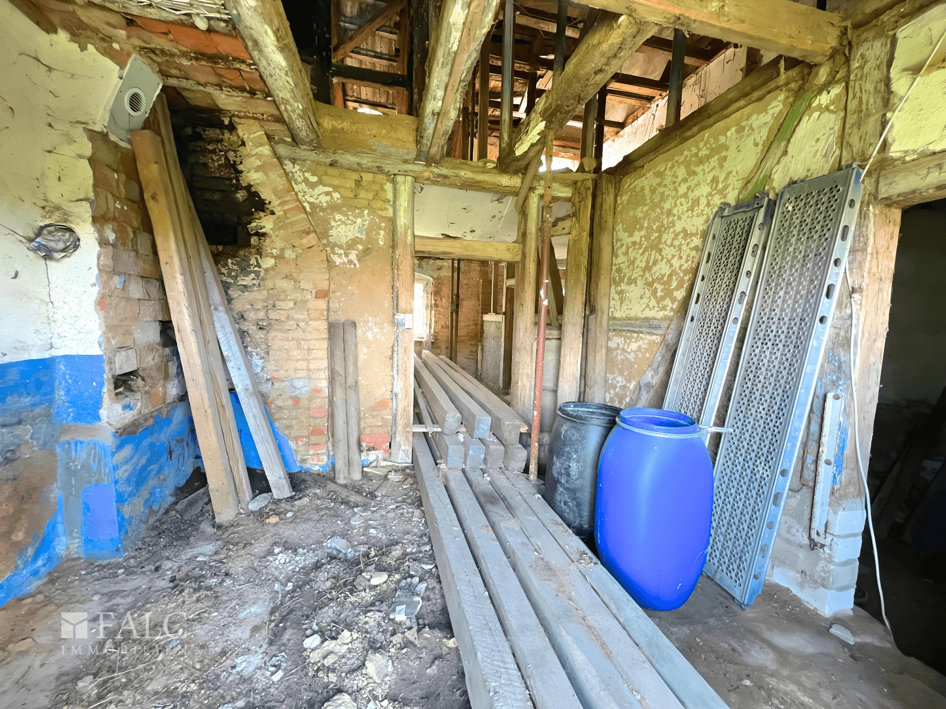 Außen: - Schuppen mit integrierter Garage - Weiterer Schuppen mit angrenzender Terrasse - vielseitige Nutzungsmöglichkeiten (z. B. Mehrgenerationenhaus, Vermietung, Wohnen und Arbeiten) - Ruhige Lage mit viel Platz im Außenbereich