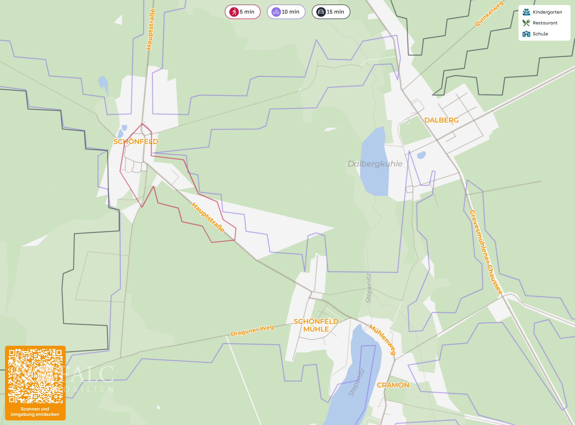 Die reizvolle Umgebung lädt zu vielfältigen Freizeitaktivitäten ein – ob ausgedehnte Spaziergänge, Radtouren oder Ausflüge zu den zahlreichen Seen und Wäldern der Region. Die Nähe zur Ostsee macht Schönfeld zudem zu einem attraktiven Wohnort für alle, die Erholung und Natur mit guter Erreichbarkeit verbinden möchten.