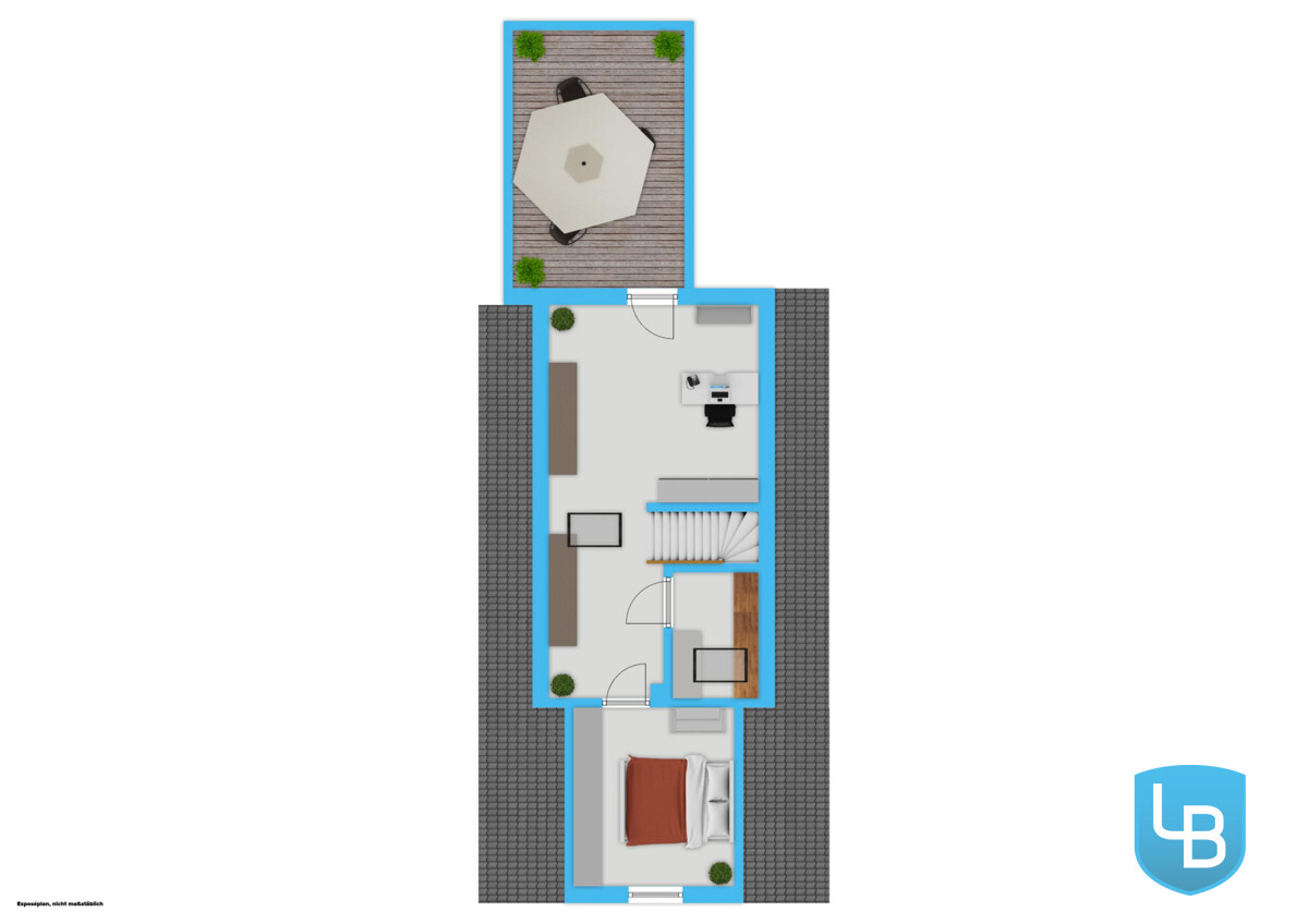 + Großes Individuell nutzbares Zimmer mit Deckenbalken und Zugang auf die Dachterrasse + Begehbare Abseite / Kleiner Raum + Weiteres individuell nutzbares Zimmer