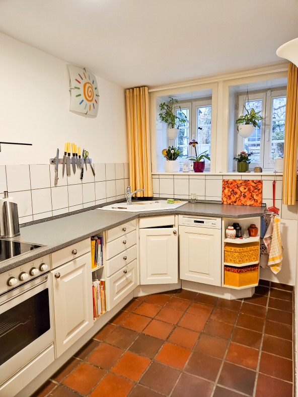 Schon beim Betreten spürt man sofort die Gemütlichkeit, die der einladende Flur mit seiner historischen Holztreppe ausstrahlt. Von hier aus sind alle Räume zu erreichen. Der Wohn-/Essbereich bildet das Herzstück des Hauses und bietet ausreichend Platz für gesellige Stunden mit Familie und Freunden. Ergänzt wird das Raumangebot durch eine separate Küche, ein praktisches Gäste-WC sowie einen Hauswirtschaftsraum mit Ausgang nach draußen. Für besonderen Komfort sorgt die im Erdgeschoss installierte Fußbodenheizung.