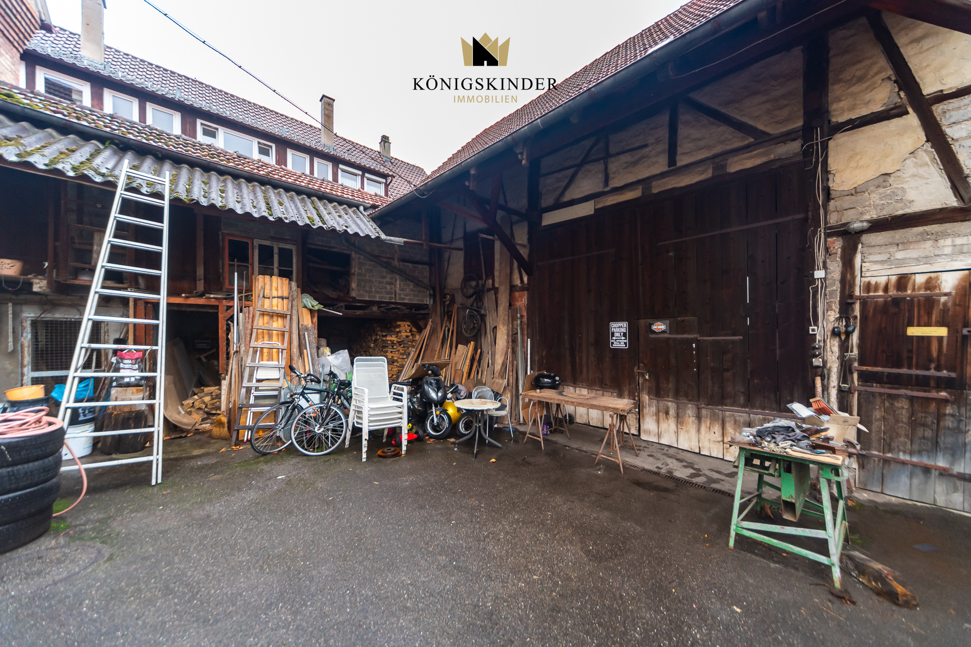 Außerhalb des Wohnhauses steht eine sehr große Scheune zur Verfügung, die vielseitig genutzt werden kann – etwa als Hobbyraum, Werkstatt, Lagerfläche oder für handwerkliche und kreative Projekte. Eine Garage sowie mehrere Stellplätze im geschützten Innenhof runden das Angebot ab und bieten komfortable Parkmöglichkeiten direkt am Haus.