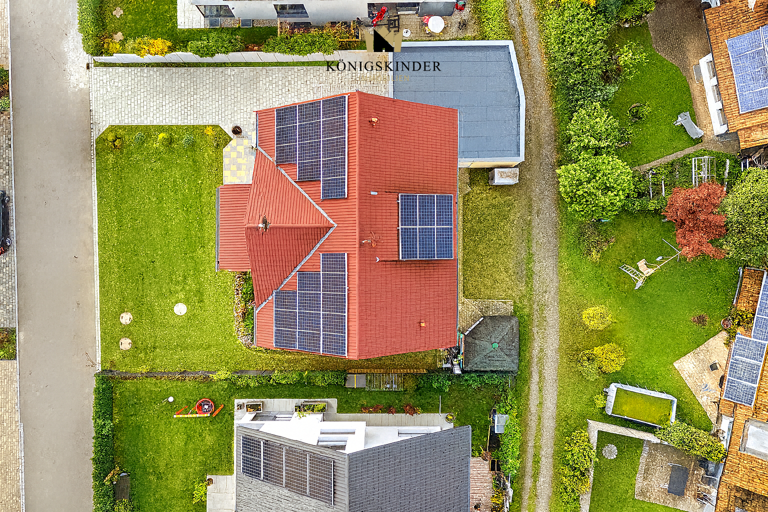 Das Grundstück mit imponierender Garagenzufahrt und angelegten, schönen Garten ist 522 m² groß, das Haus ist über die Garage zusätzlich zugänglich.