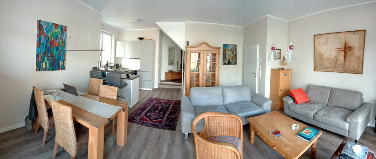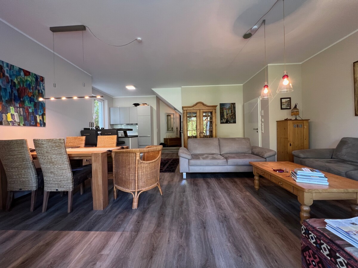 Der offene Wohn- und Essbereich lädt zu geselligen Abenden mit Freunden und Familie ein. Große Fensterfronten sorgen für eine angenehme Lichtdurchflutung und schaffen eine freundliche Atmosphäre. Die moderne Küche ist funktional gestaltet und bietet genügend Raum für kulinarische Entfaltung.