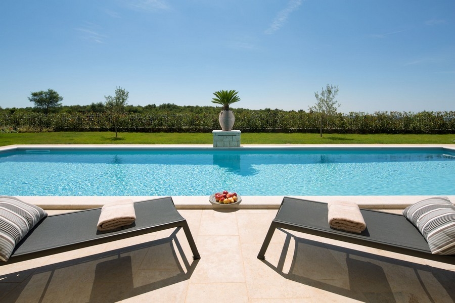 Die Außenanlage zeichnet sich durch einen gepflegten Garten mit Swimmingpool aus. Darüber hinaus verfügt die Villa über einen exzellent ausgestatteten Sportbereich mit einem Multifunktionsfeld für Handball, Basketball und Fußball, einem Volleyballfeld, zwei Tennisplätzen, zwei Bocciabahnen, einer Tischtennisplatte, Outdoor-Fitnessgeräten und einem großzügigen Kinderspielplatz.