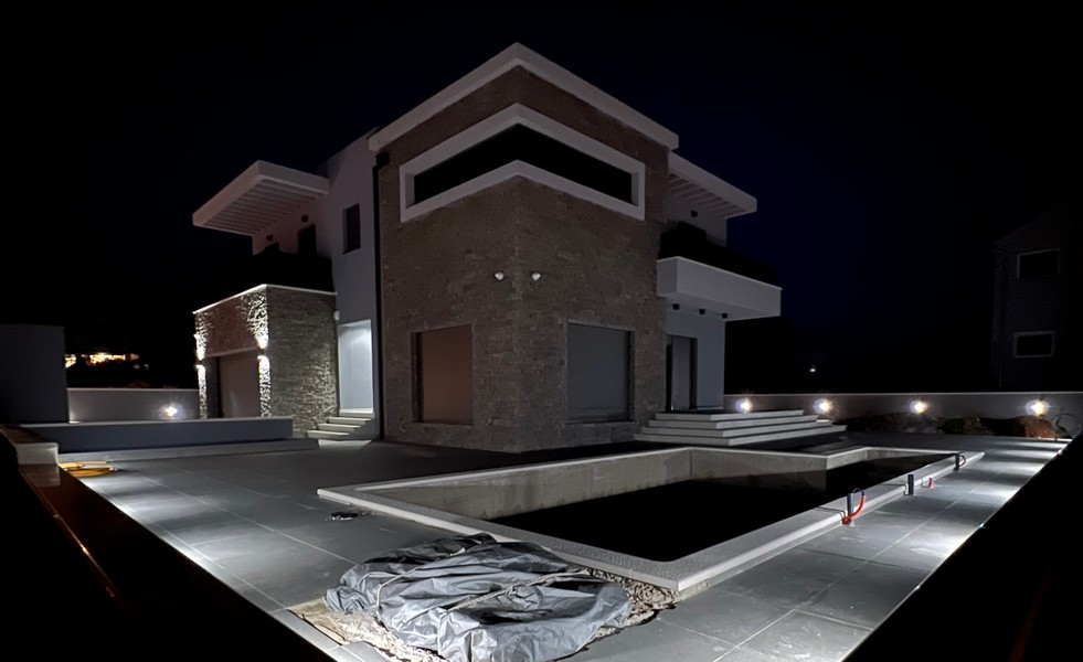 Die Villa wird momentan (geplante Fertigstellung Frühjahr 2021) auf einem 520 m² großen Grundstück erbaut und bietet eine Gesamtfläche von ca. 310 m² mit folgenden Räumlichkeiten auf drei Etagen: