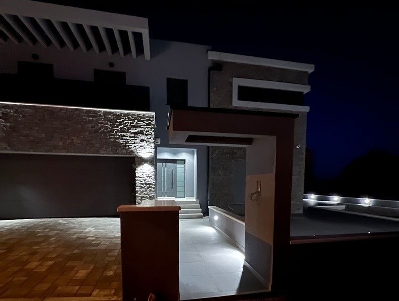 Die Villa wird mit einem modernen Smart-Home System und Möblierung sowie Klimatisierung ausgestattet. Im Außenbereich der Villa befinden sich ein ca. 35 m² großer Swimmingpool, ein Kinderspielplatz, ein Whirlpool und ein großer Grill sowie zwei Stellplätze (plus Garage). Die Distanz zum Meer beträgt nur ca. 300 Meter.