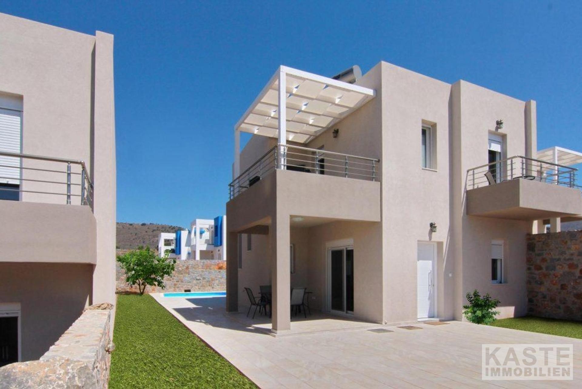 Diese neu gebaute, moderne Villa ist Teil eines Villenkomplexes, der sich im Dorf Kounali, nahe der Nordküste Kretas, im östlichen Teil der Insel (Präfektur Lasithi) befindet.