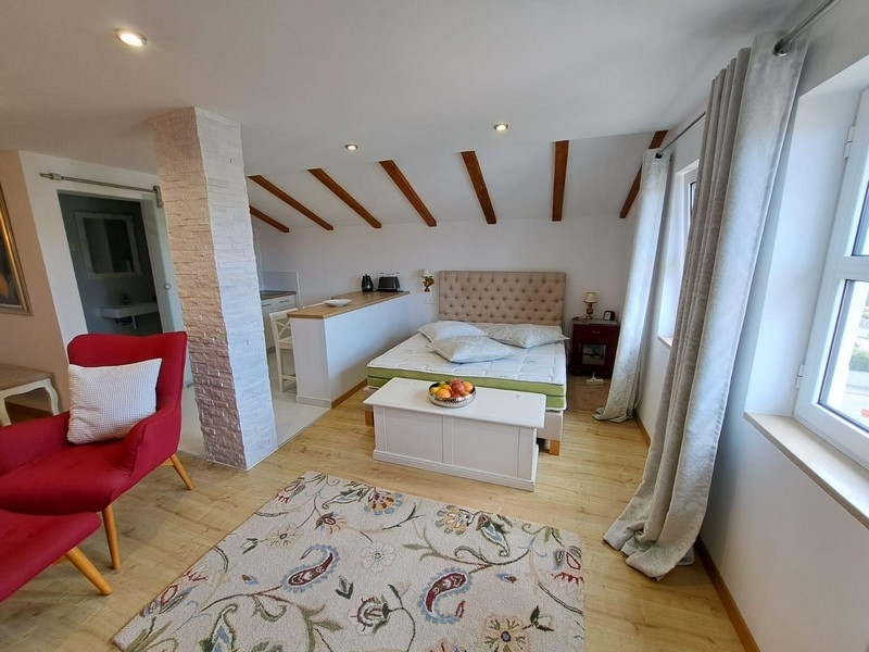 Alle Apartments verfügen über einen Balkon oder eine Terrasse mit Blick auf den Pool und das Meer, einen Flachbild-Sat-TV, WLAN und eine voll ausgestattete Küche. Die Villa wird mit einer Pelletzentralheizung und Klimaanlage beheizt und gekühlt. Bei Bau und Dekoration wurden hochwertige Materialien, Geräte und Möbel verwendet.