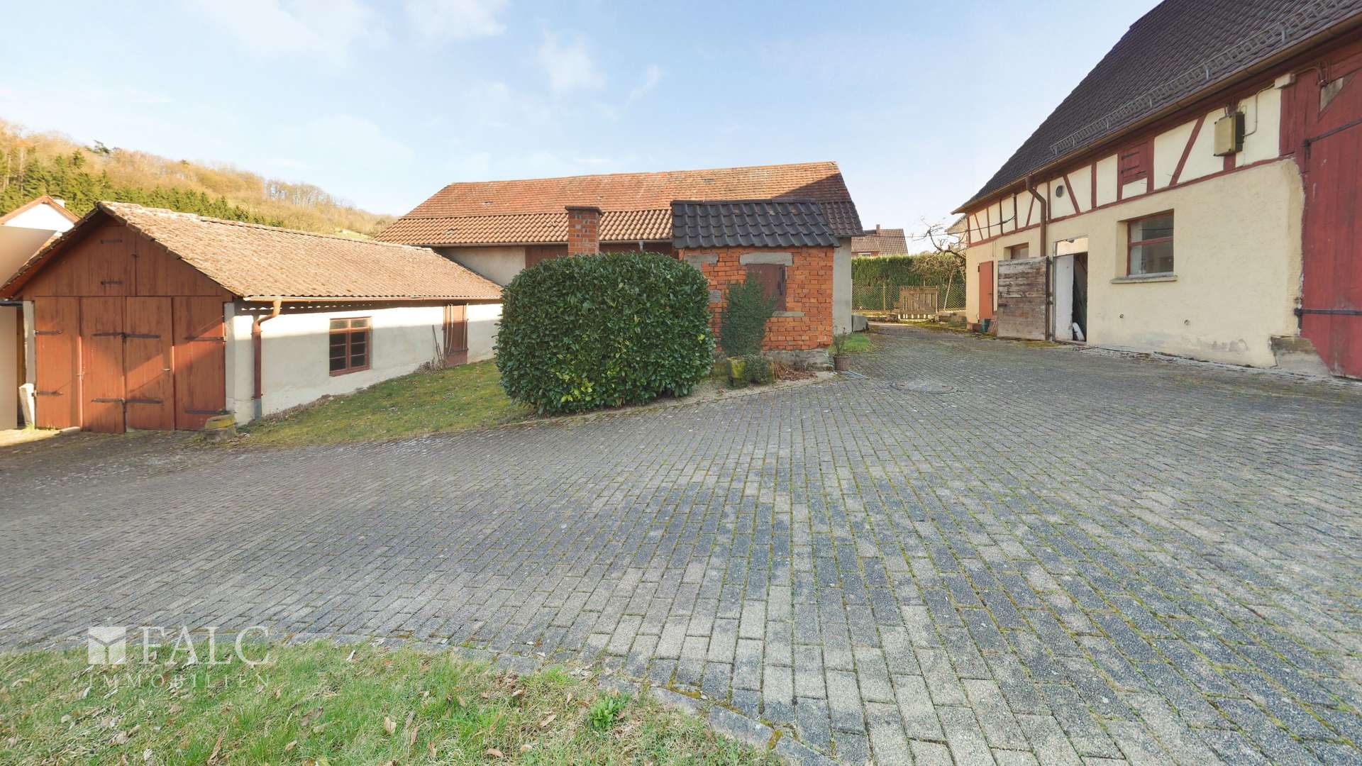 Das Anwesen wird durch zahlreiche Nebengebäude ergänzt und bietet damit ein enormes Potenzial: Eine stattliche Scheune mit angrenzendem Stall und Heuboden neben dem Wohnhaus, eine weitere großzügige Scheune mit kleiner Werkstatt und einem Hühnerstall, ein separates Garagengebäude sowie ein zentrales, renovierungsbedürftiges Backhaus verleihen dem Objekt seinen besonderen, ländlichen Charakter. Der weitläufige Hofbereich sowie der Garten mit Südwest-Ausrichtung und Terrasse laden zum Verweilen ein.