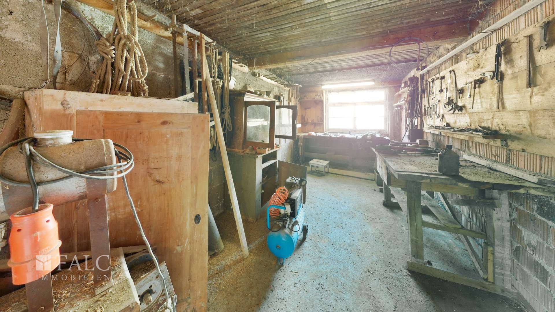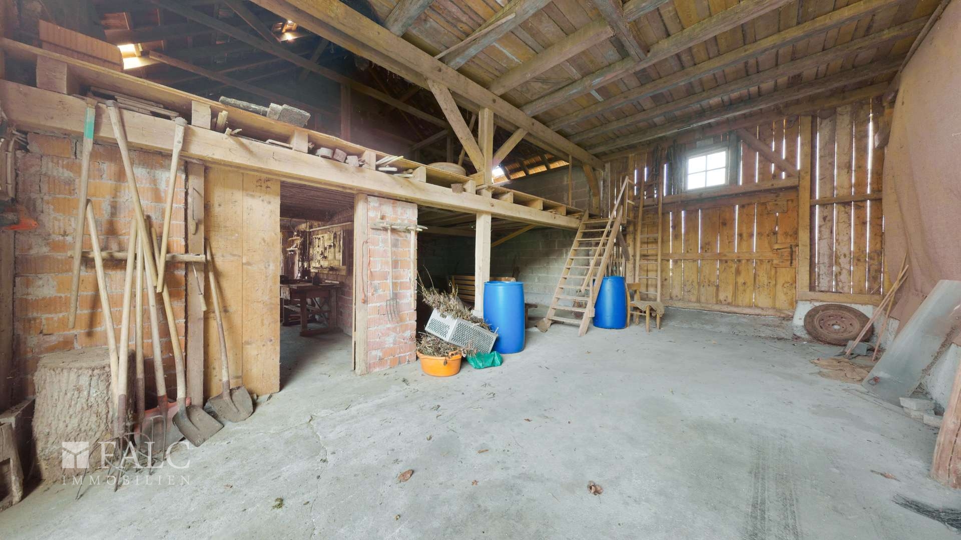 *Außenbereich und Nebengebäude Das Anwesen besteht aus: 1. einem neueren Haupthaus (Bj. 1991) 2. Einer Scheune mit angrenzendem Stall (Bj. ca. 1906) sowie einer Stallerweiterung (Bj. ca. 1940) 3. Einer separaten Scheune mit Werkstatt und Hühnerstall (Bj. ca. 1961 mit Erweiterung Bj. ca. 1964) 4. Garagengebäude (Bj. ca. 1967) 5. Zentrales kleines Backhaus (Bj. unbekannt, renovierungsbedürftig) - großer Hofbereich - Terrasse und Gartenbereich in Südwest-Ausrichtung