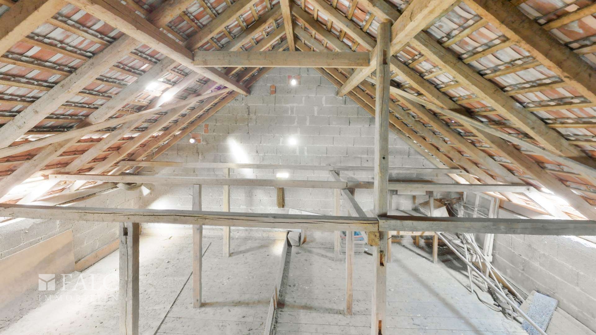Das Dachgeschoss bietet derzeit zwei großzügige Zimmer, die sich bei Bedarf in bis zu vier separate Räume unterteilen lassen – ideal für Familien oder individuelle Nutzungskonzepte. Ein Duschbad mit WC sowie zusätzliche Abstellfläche oder Ausbaureserve im Spitzboden runden das Platzangebot ab.
