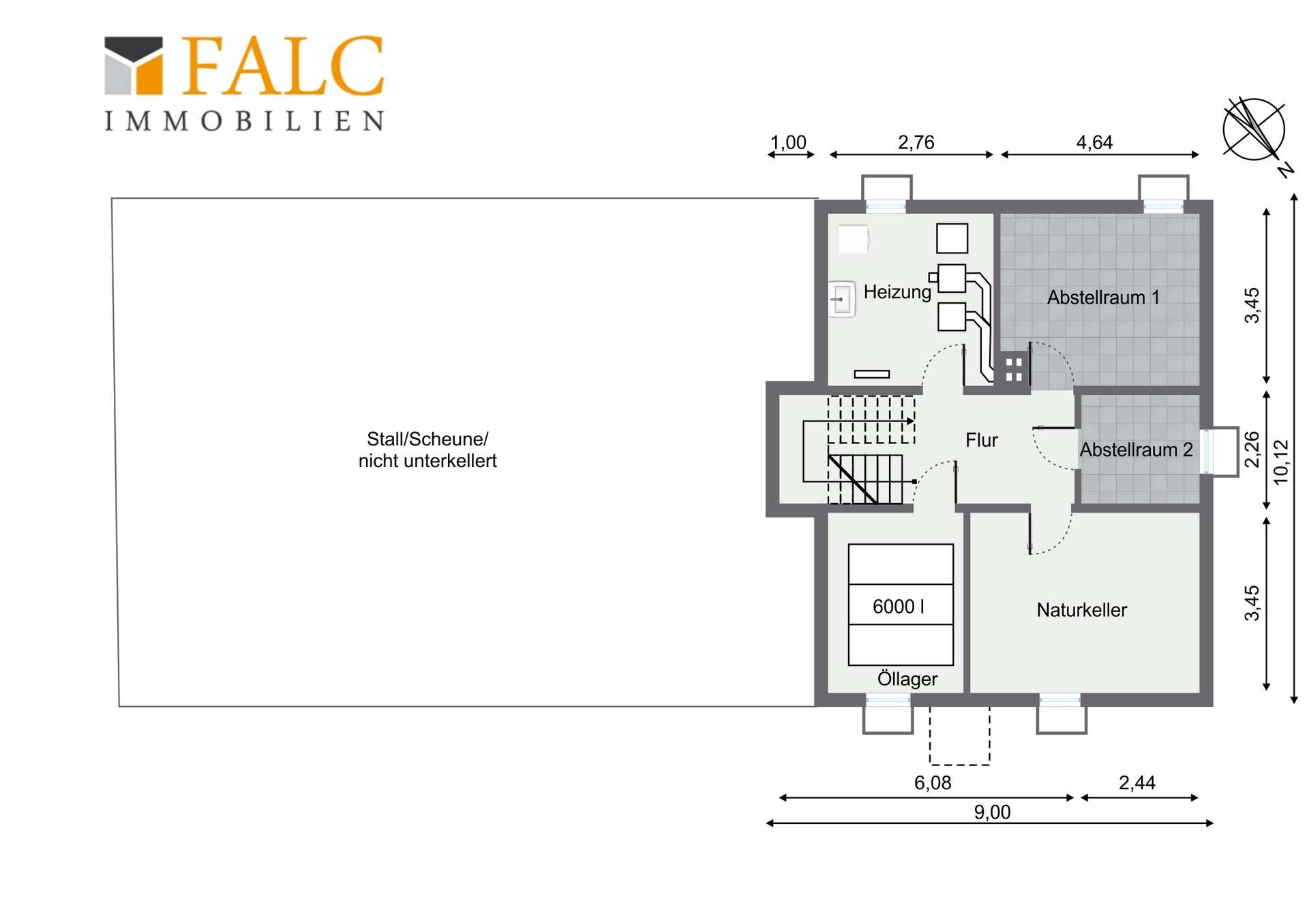 *Untergeschoss - Flur - Heizraum mit Waschküche - Tankraum - Keller mit Naturboden - 2 Abstellräume