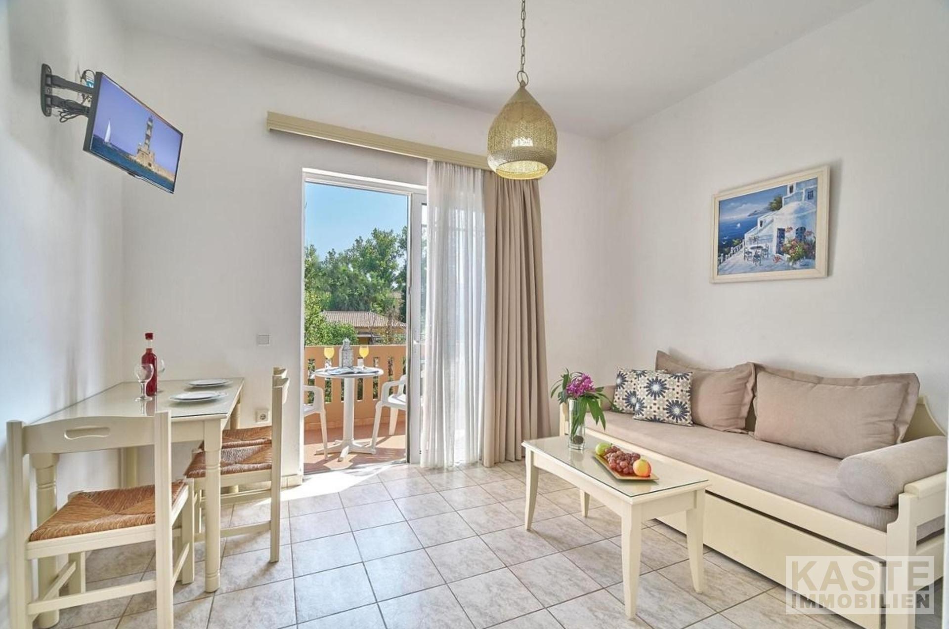 Diese klimatisierten Apartments bestehen aus einem Schlafzimmer, einem Wohnzimmer, einer voll ausgestatteten Küche mit Kühlschrank und Wasserkocher sowie einem Badezimmer mit Badewanne, Haartrockner und Handtüchern. Die Apartments sind mit einem Kingsize-Doppelbett (mit Anti-Angst-Matratzen) oder 2 Einzelbetten und einem Schlafsofa ausgestattet. Jedes Apartment verfügt über einen Smart-TV, ein Moskitonetz und kostenloses Wi-Fi. Die Balkone haben Blick auf den Pool oder den Garten.