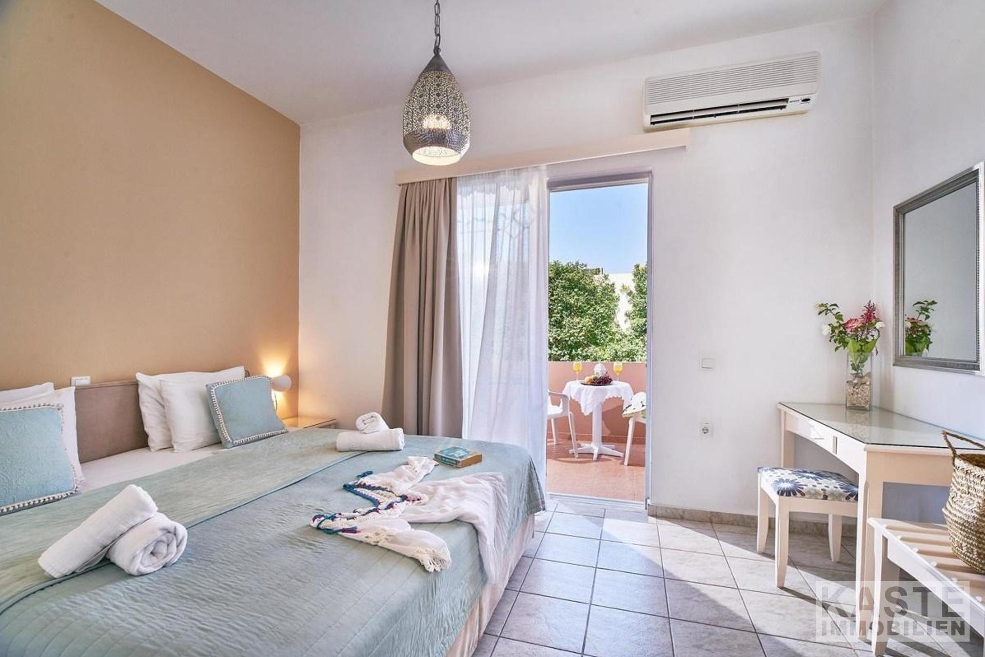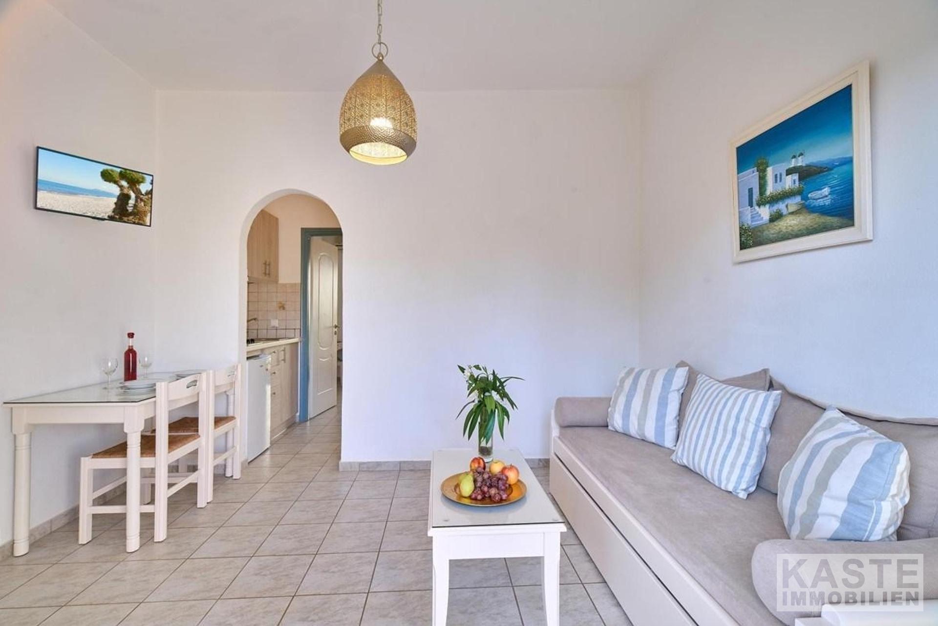 Diese klimatisierten Apartments bestehen aus einem Schlafzimmer, einem Wohnzimmer, einer voll ausgestatteten Küche mit Kühlschrank und Wasserkocher sowie einem Badezimmer mit Badewanne, Haartrockner und Handtüchern. Die Apartments sind mit einem Kingsize-Doppelbett (mit Anti-Angst-Matratzen) oder 2 Einzelbetten und einem Schlafsofa ausgestattet. Jedes Apartment verfügt über einen Smart-TV, ein Moskitonetz und kostenloses Wi-Fi. Die Balkone haben Blick auf den Pool oder den Garten.