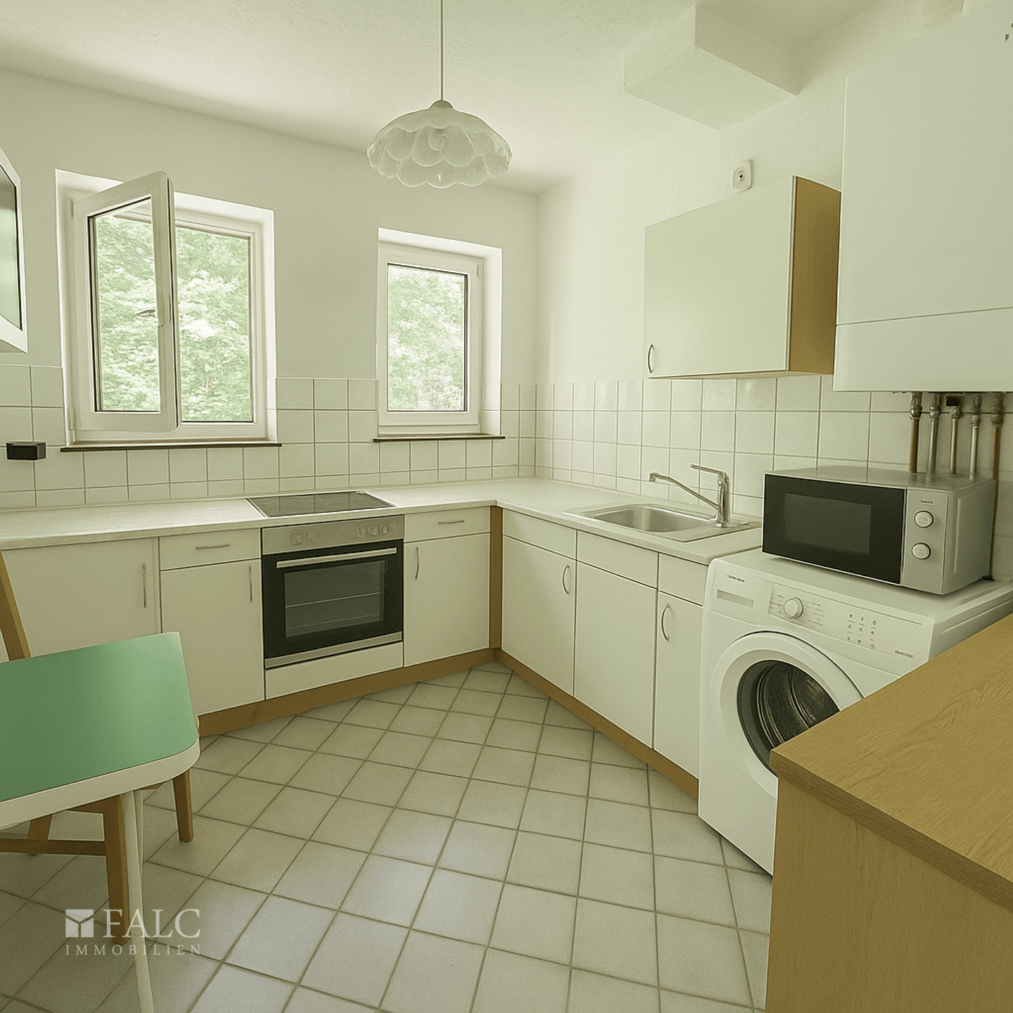 Ein besonderes Highlight ist der eigene Balkon, der an warmen Tagen zum Verweilen im Freien einlädt. Die Wohnung bietet zudem einen eigenen Kellerraum sowie einen Garagenstellplatz – ein echter Mehrwert, der zusätzlichen Komfort bietet und die Vermietbarkeit deutlich erhöht.